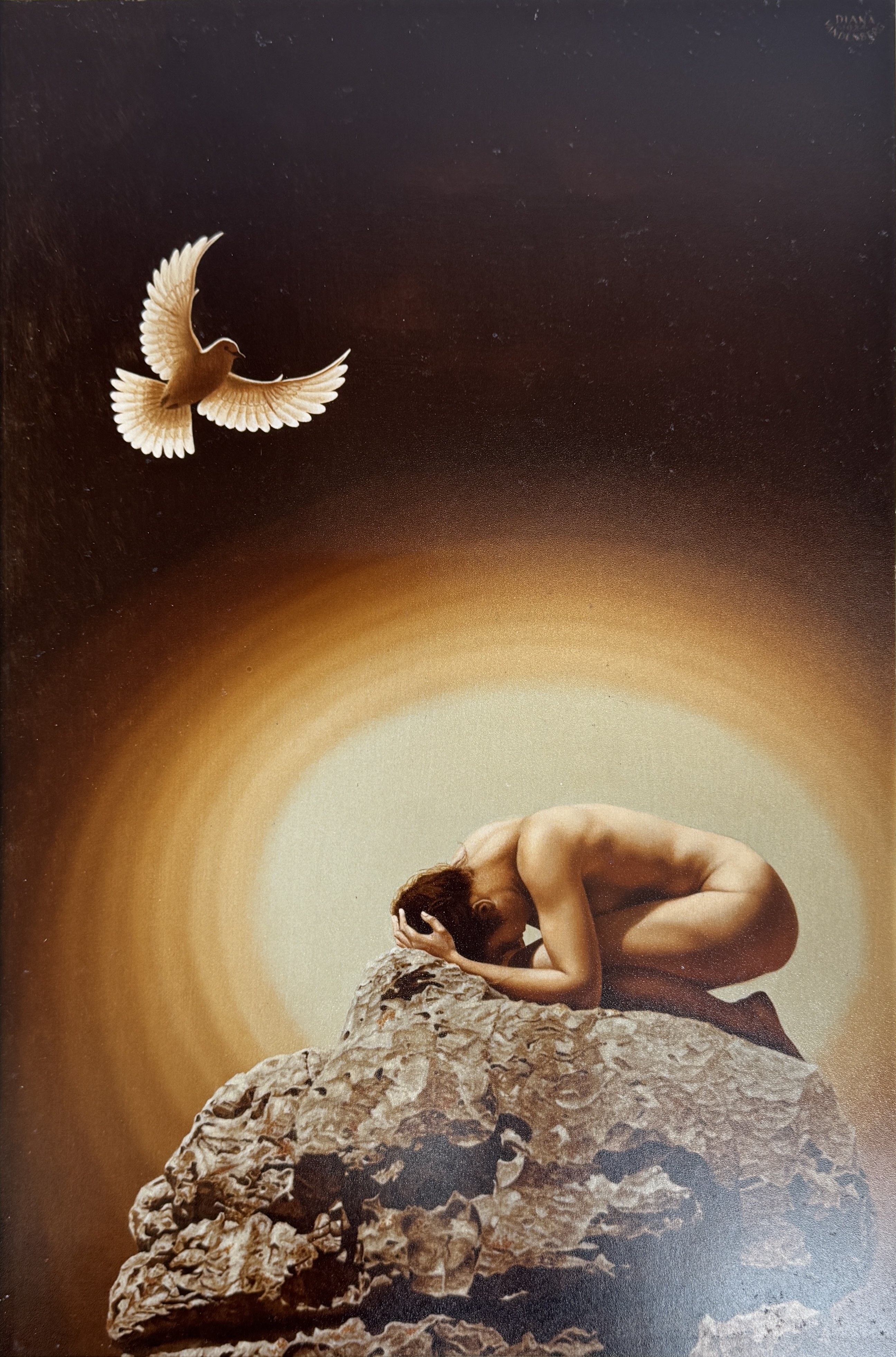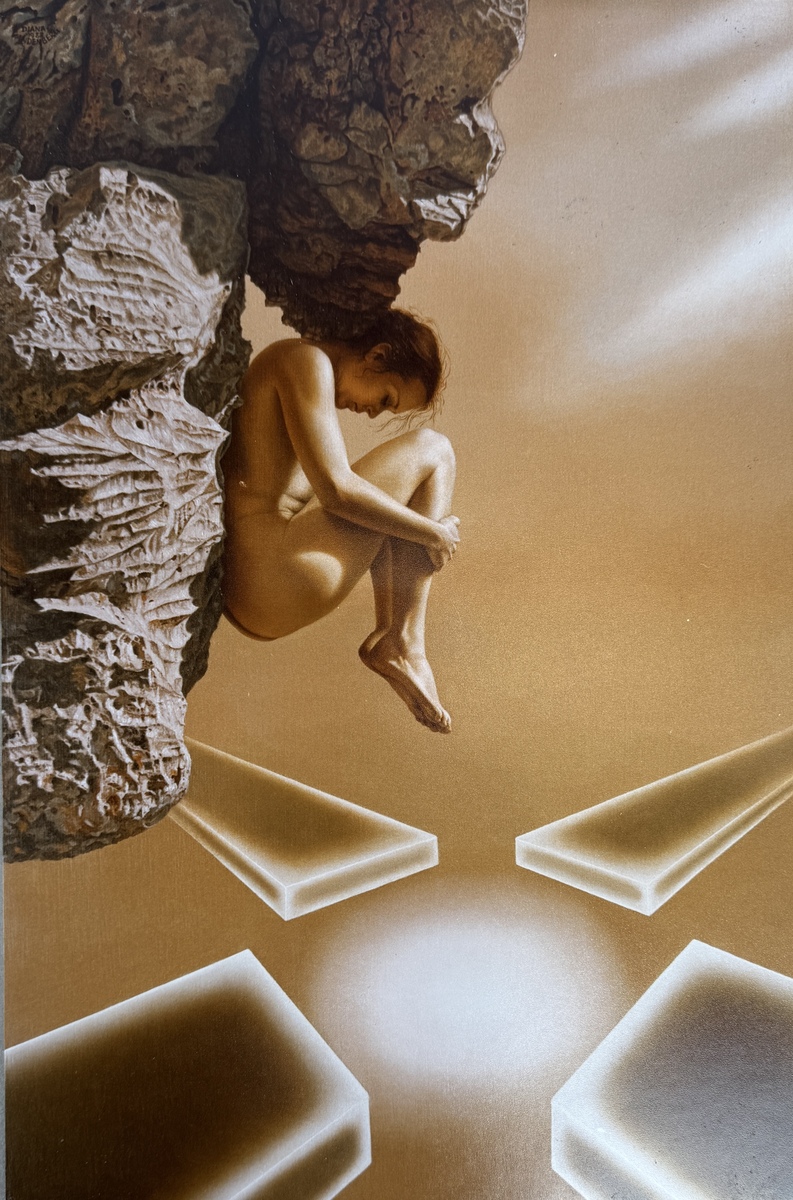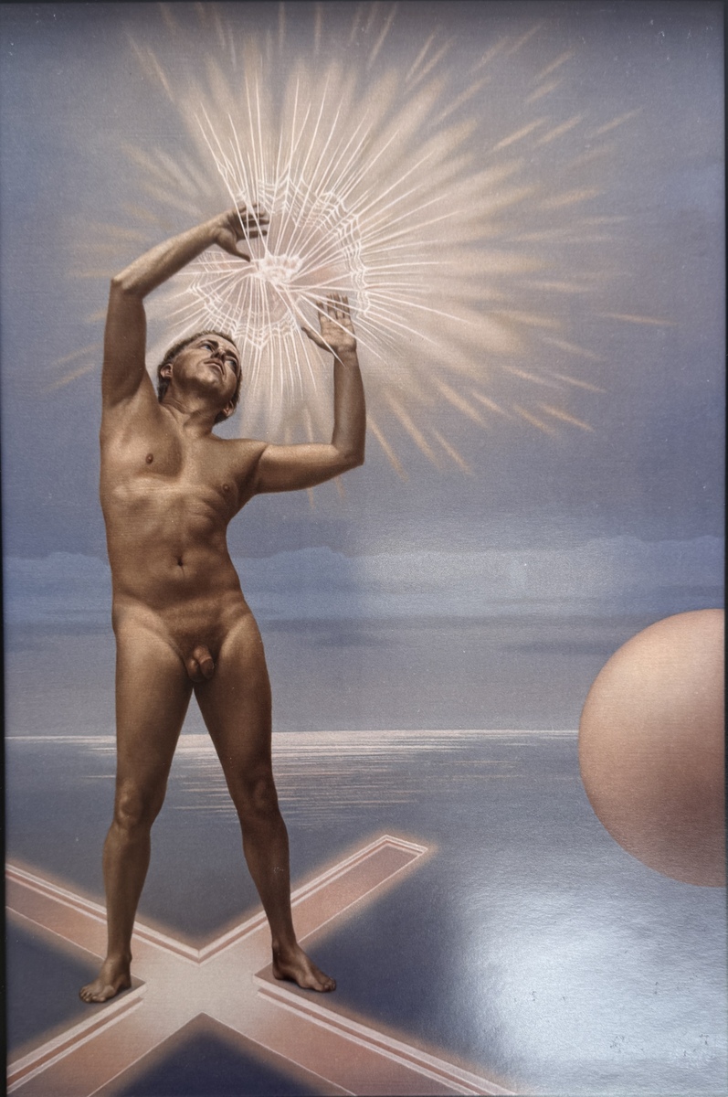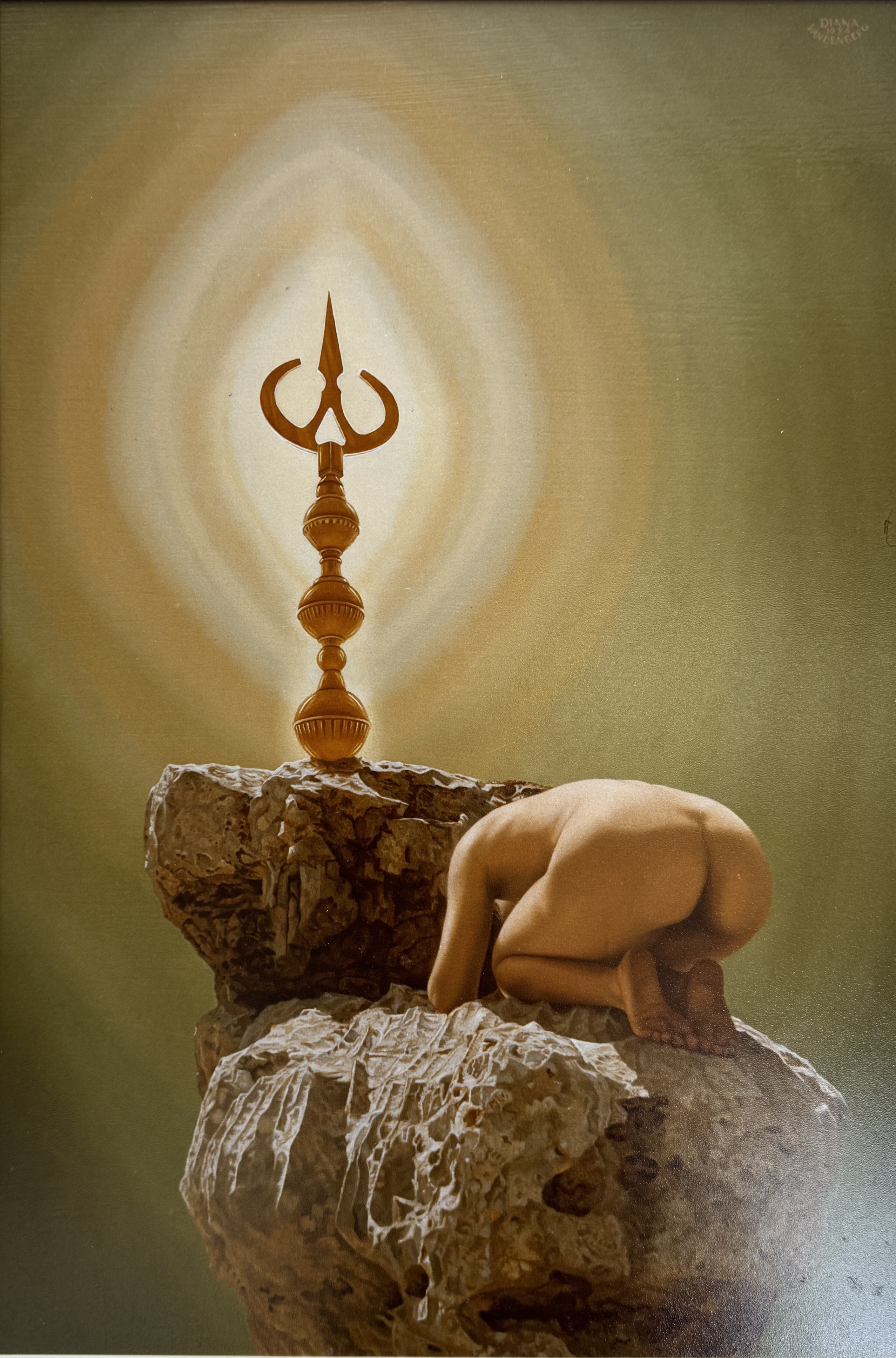 Set van 13 originele foto’s van schilderijen door Diana Vandenberg (1923–1997), circa 1986, in harmonica-achtige leporello-uitvoering. De afbeeldingen tonen surrealistisch-symbolistische composities met naakte figuren, rotsformaties en transparante vormen, vaak in meditatieve of introspectieve houdingen. Gemaakt als kunstdruk op papier. Bied eenvoudig mee, live of online. Registreer nu. |