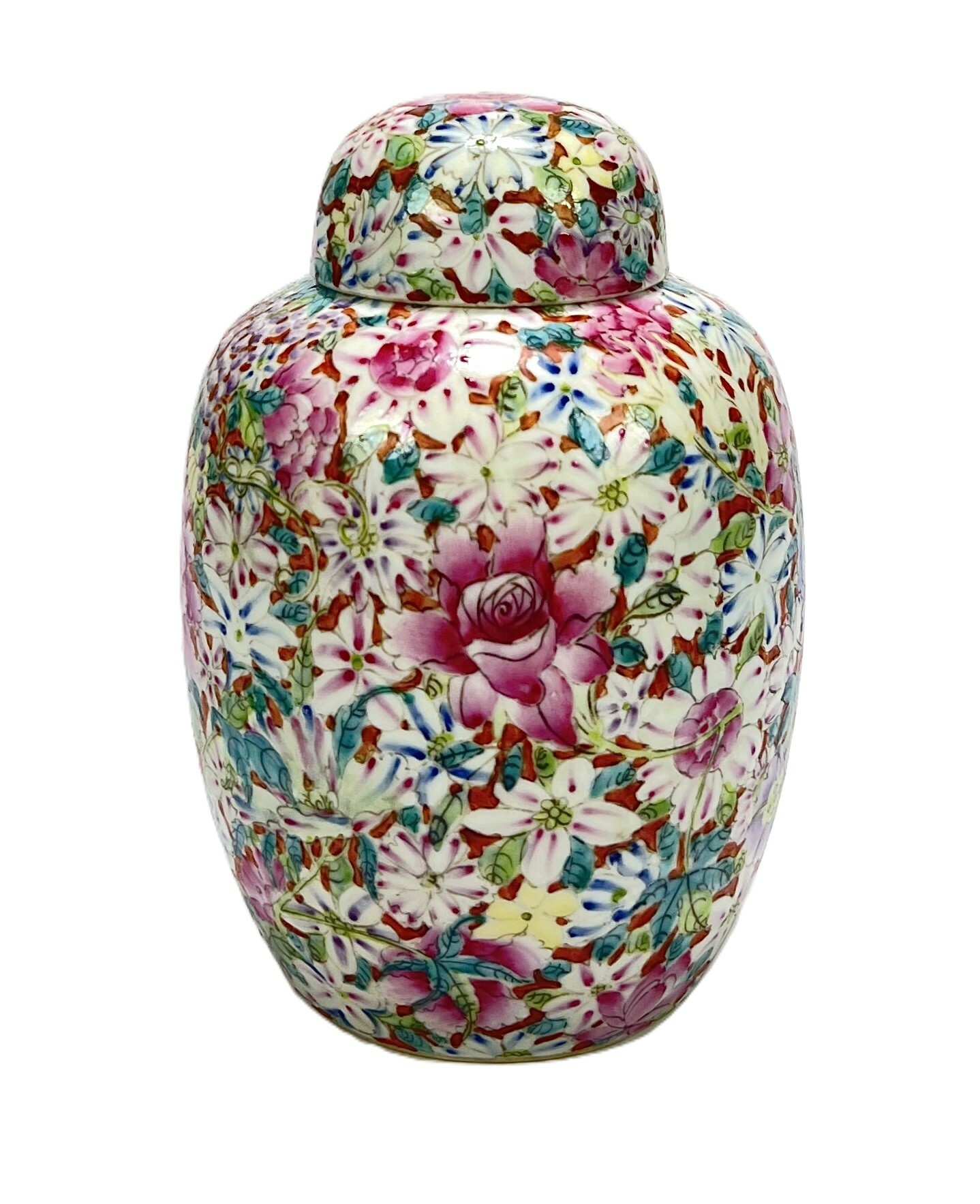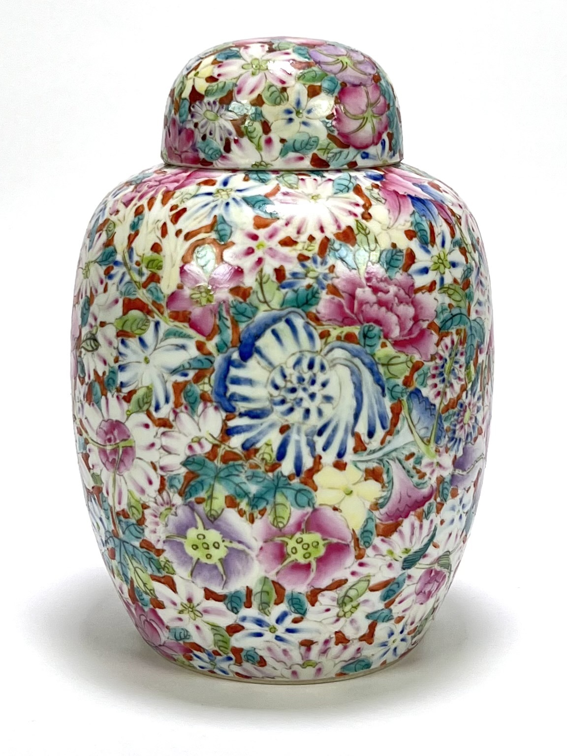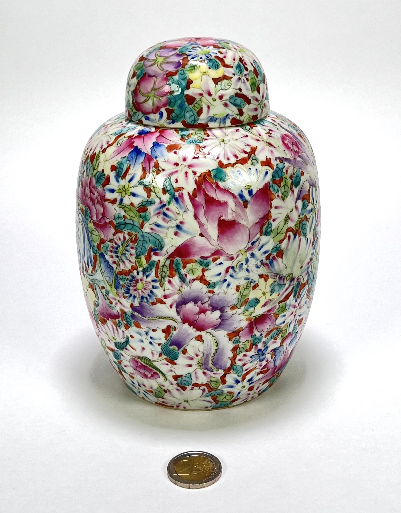 Chinese porseleinen gemberpot met deksel, polychroom beschilderd in famille rose-stijl met duizend bloemendecor, gemerkt aan de onderzijde met "Da Qing Guangxu Nian Zhi". 19e eeuw. Porselein, handbeschilderd. Opvallend door de levendige kleuren en het volledig bedekkende bloemmotief. Geïnteresseerd? Bezoek onze kijkdagen voor een persoonlijke bezichtiging! |
