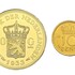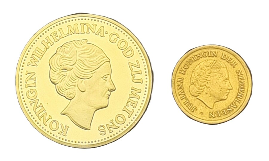 Vergulde munten, dubbeltje en tientje, 1933 en 1958, Nederland