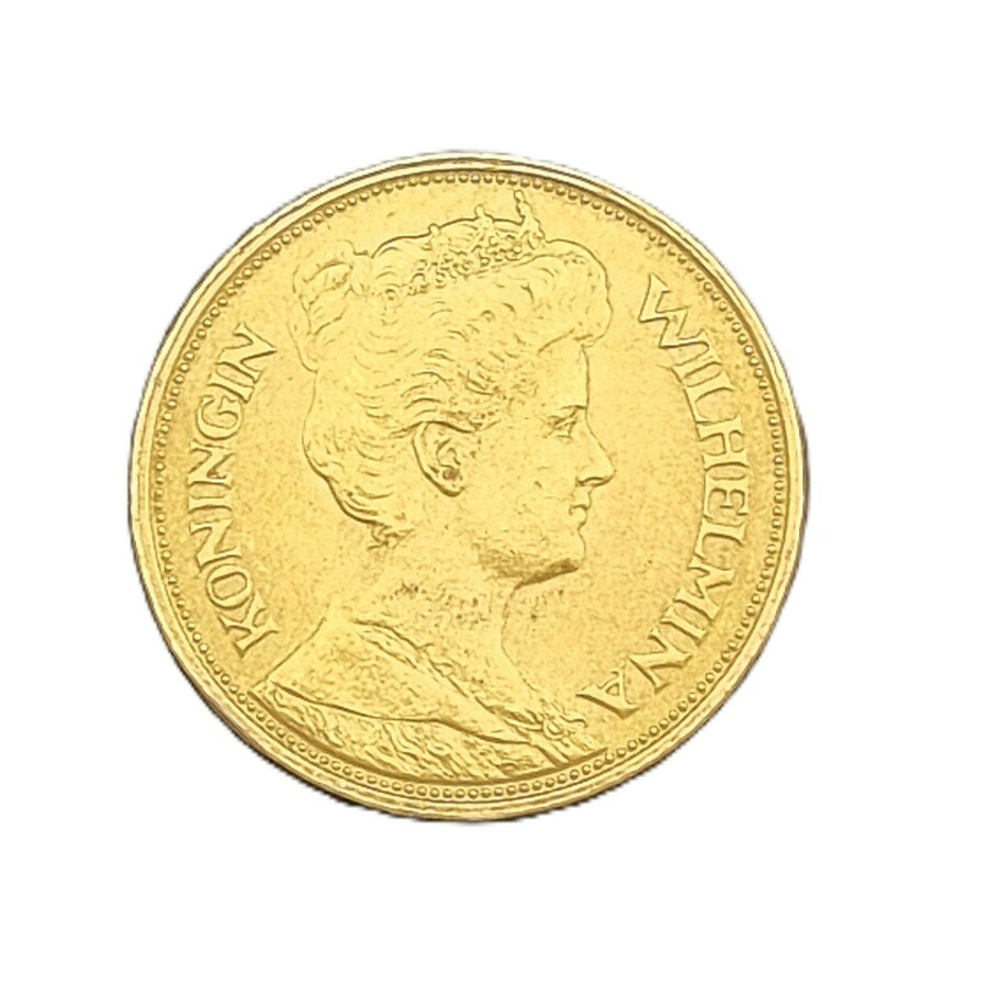 Gouden vijfje Wilhelmina met hermelijnen mantel uit 1912, bevat 900/1000 goud. Rondom de munt is de tekst "KONINGIN WILHELMINA" geschreven en op de keerzijde is het gekroond Nederlands wapen afgebeeld. Het gouden vijfje is ontworpen door J. C. Wienecke. Het gouden vijfje zelf beoordelen? Je bent welkom op onze kijkdagen op 29, 30 en 31 augustus!