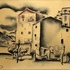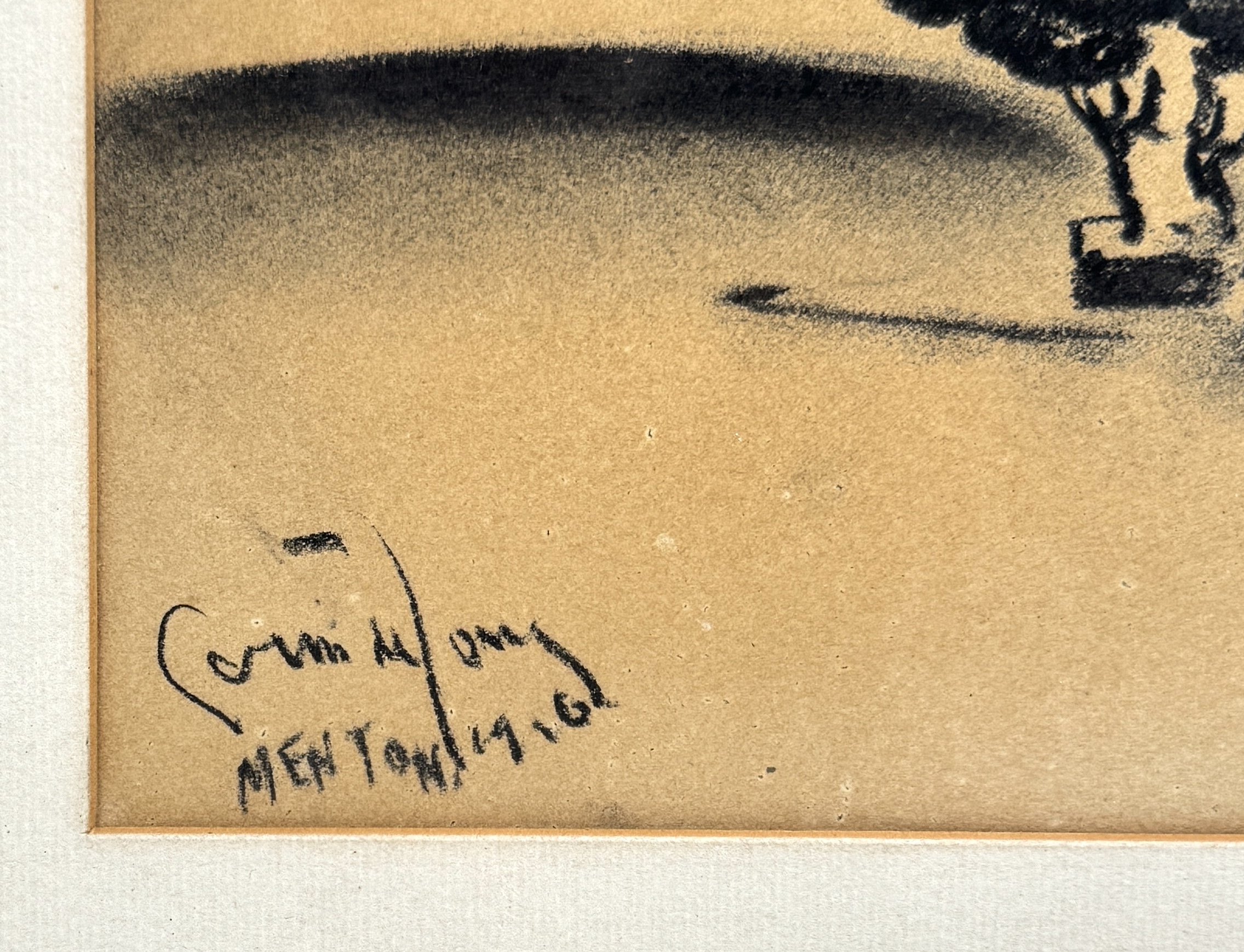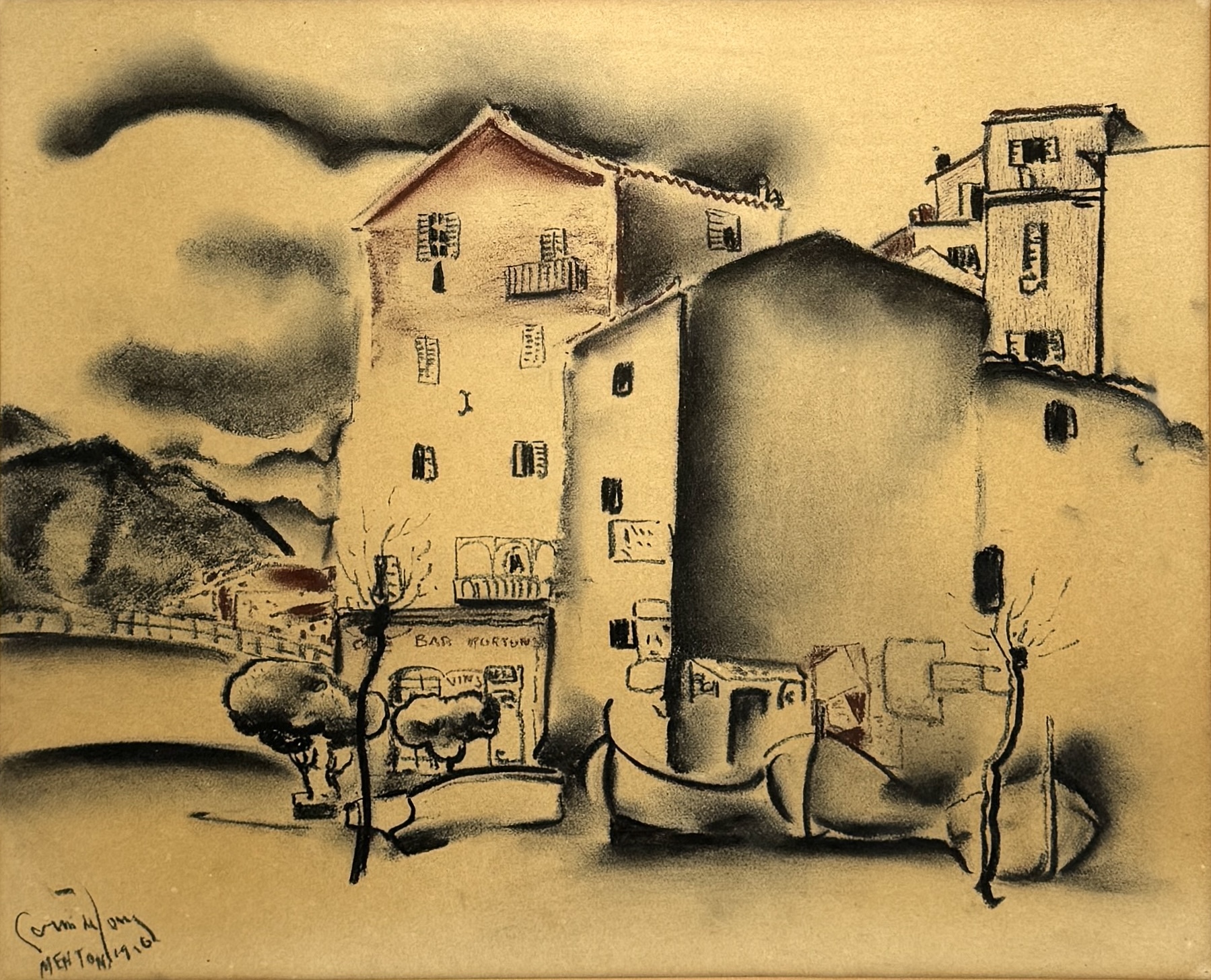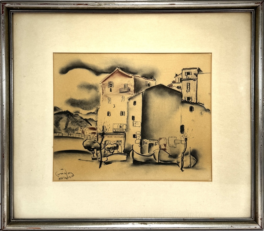 Pasteltekening Germ de Jong, straatbeeld Menton, 1946