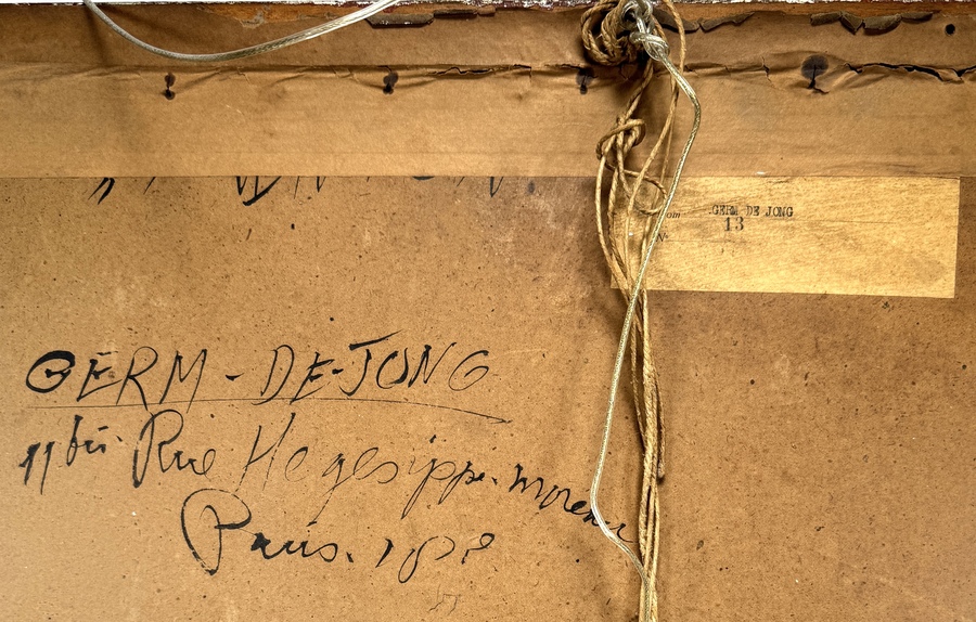 Pasteltekening van Germ de Jong (1886–1967), uitgevoerd in pastel en houtskool op papier. Voorstelling van een straatbeeld in Menton, Zuid-Frankrijk, met markante architecturale elementen en sfeerbepalende wolkenpartij. Linksonder gesigneerd en gedateerd Germ de Jong / Menton 1946. Op de achterzijde geadresseerd etiket met zijn Parijse atelieradres. Frans interbellum met expressionistische en modernistische invloeden. Geïnteresseerd? Bezoek onze kijkdagen op 29, 30 of 31 augustus van 11:00 tot 17:00 uur! |