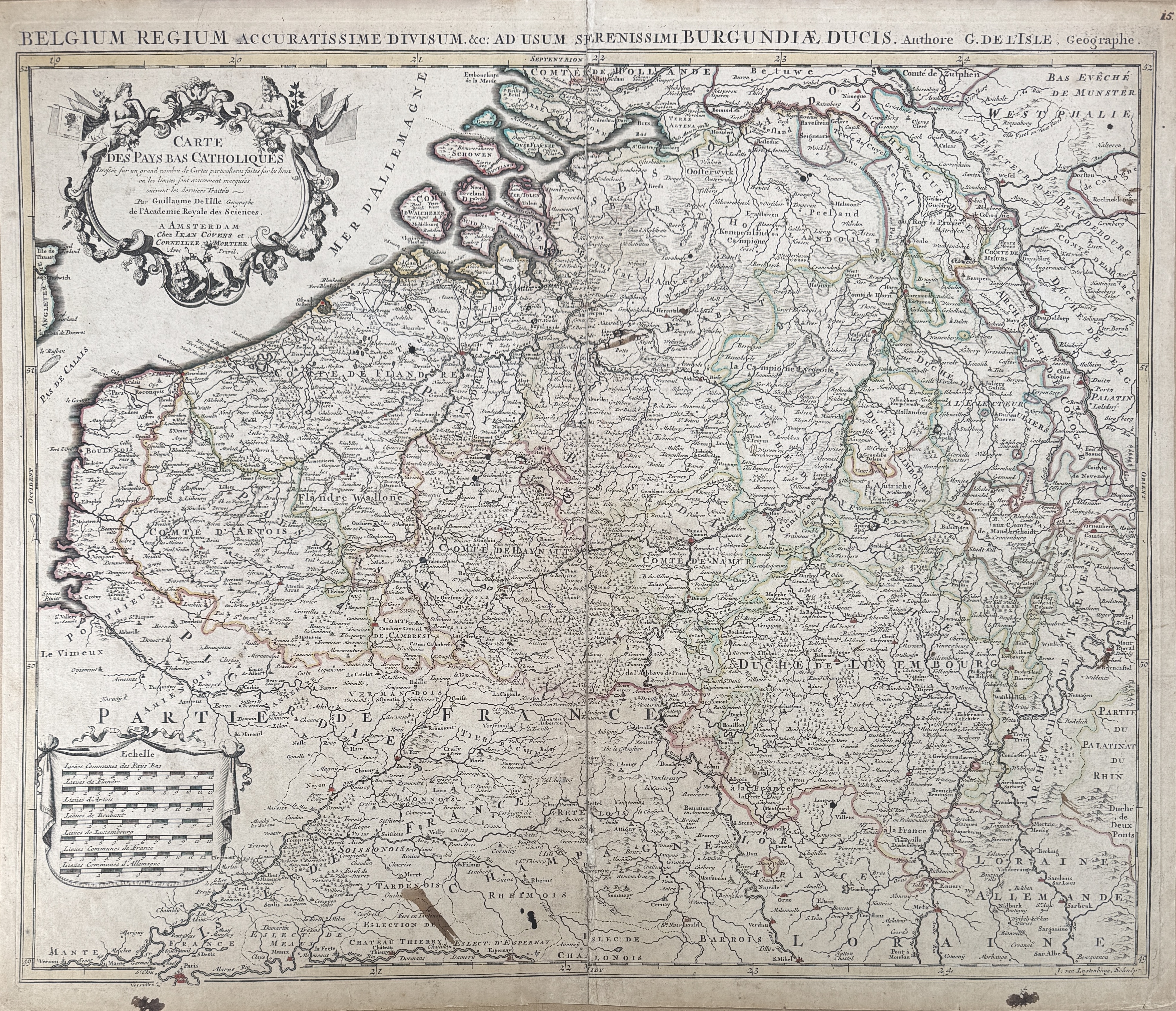 Kopergravure kaart zuidelijke Nederlanden Delisle ca. begin 18e eeuw