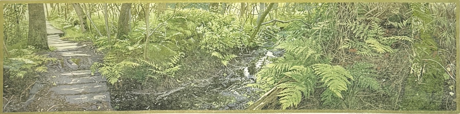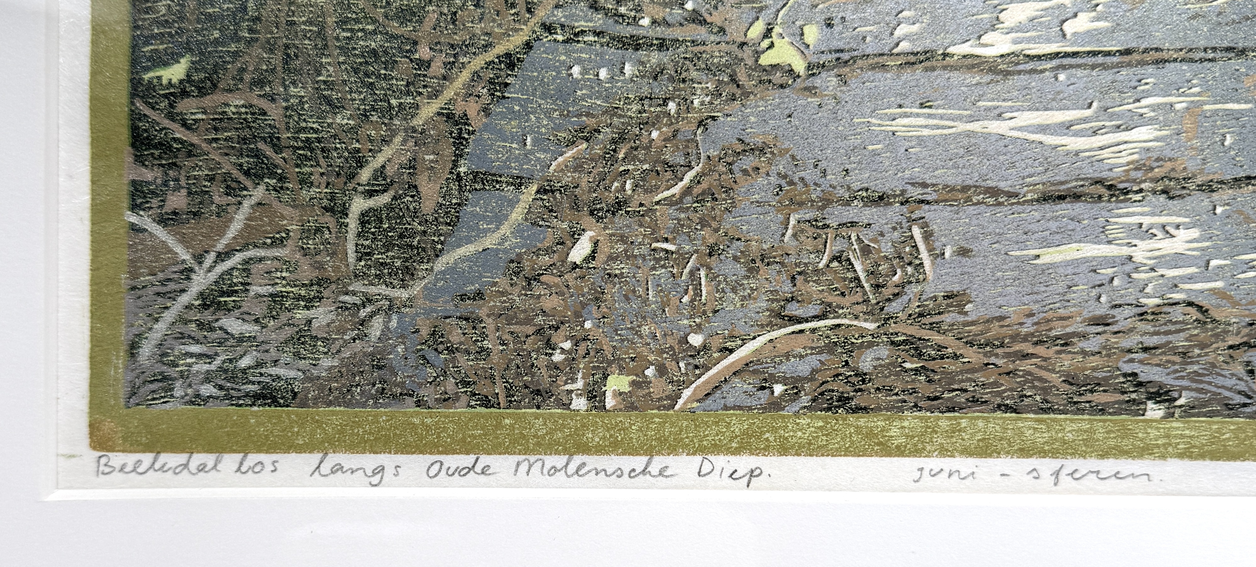 Kleurenhoutsnede Siemen Dijkstra, “Beekdalbos langs Oude Molensche Diep", 2000