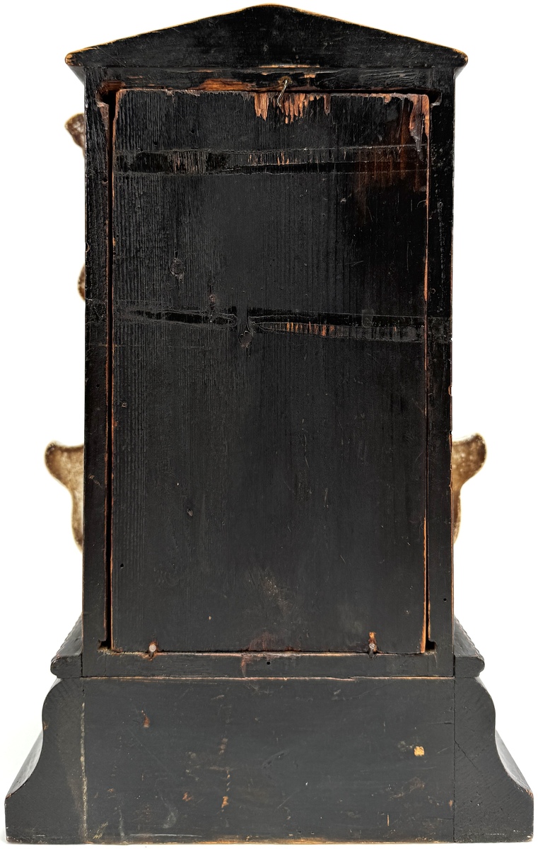 Porseleinen pendule op houten sokkel, ca. 1880–1900