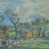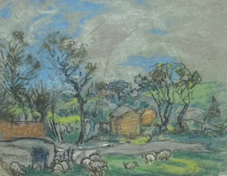 Krijttekening, landschapsgezicht met schapen, midden 20e eeuw