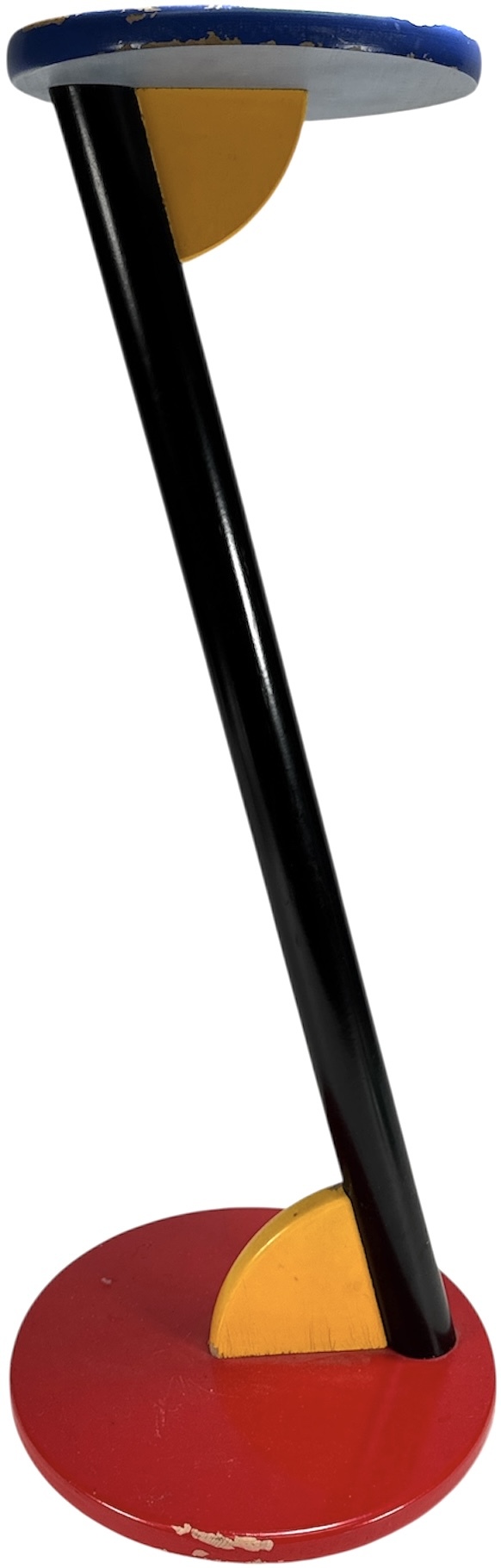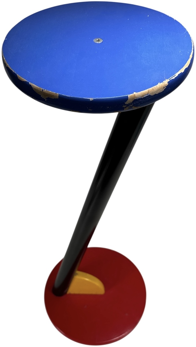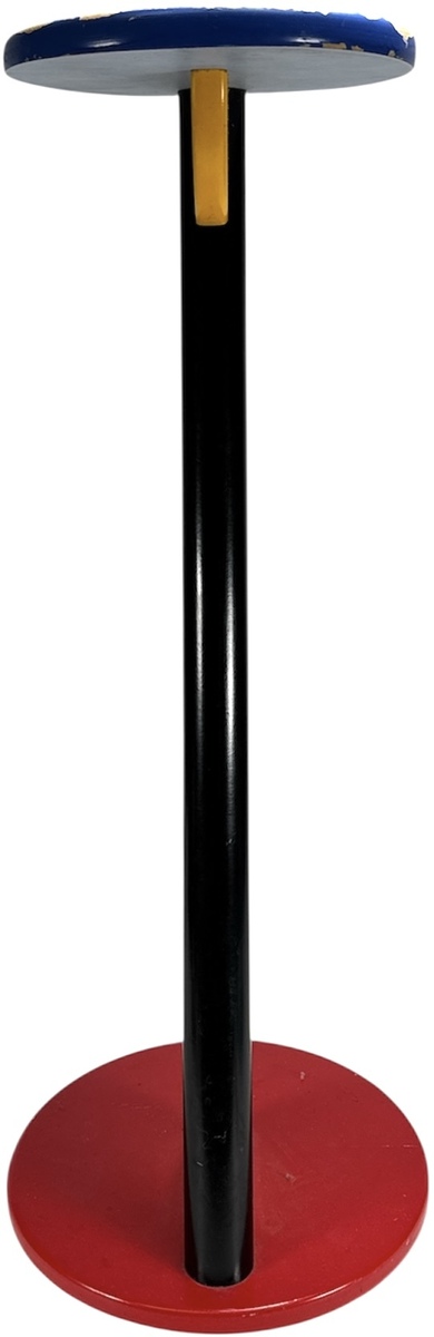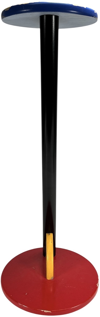Een bijzettafel in een postmoderne Memphis stijl, daterend van uit de jaren '80. De bijzettafel is vervaardigd van gelakt hout in de primaire kleuren rood, blauw, geel en zwart. De bijzettafel bestaat uit geometrische vormen, de schuine stand van de poot is een kenmerkend visueel detail. Wil je direct deelnemen? Plaats vanaf 22 augustus alvast een schriftelijk bod via onze website! |
