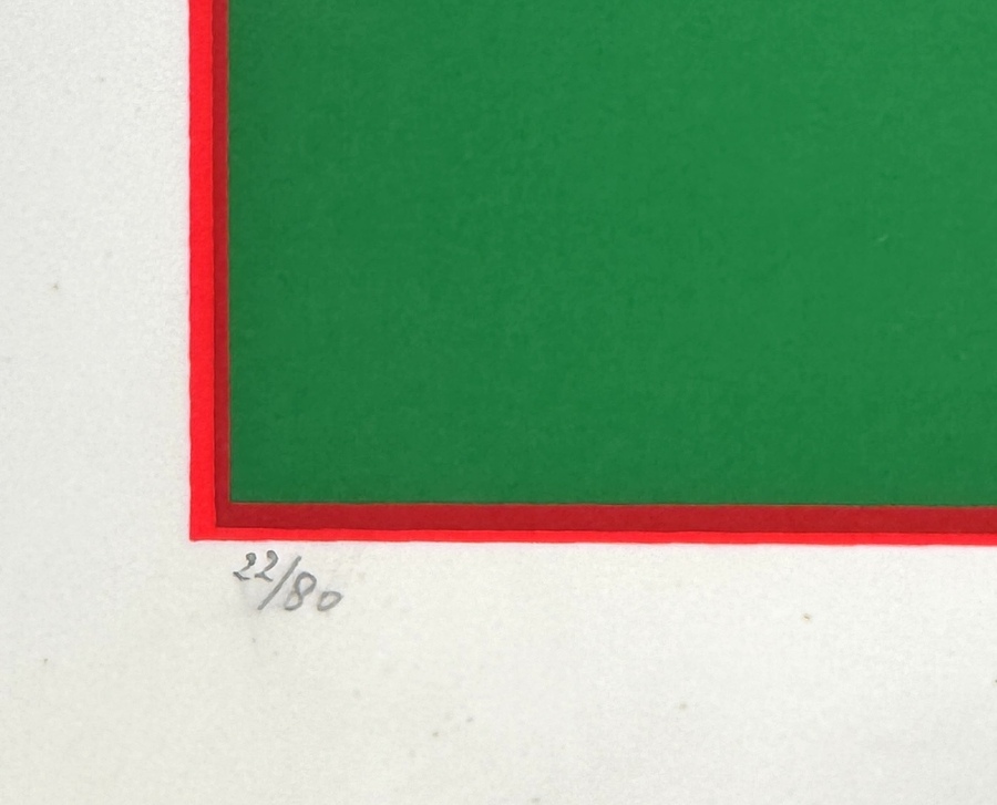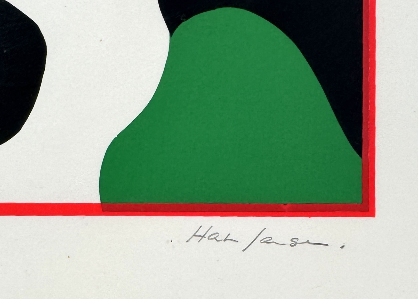 Zeefdruk van Han Jansen (1931–1994), uitgevoerd op papier, circa 1970–1980. Grafische compositie met koeien in een groen weidelandschap (een thema waar de Groningse kunstenaar in de jaren ’70 bekendheid mee vergaarde) en een passerende rode trein aan de horizon. Kenmerkend zijn de minimalistische vlakverdeling, contrasterende kleuren en abstrahering van het Nederlandse landschap. Rechtsonder met potlood gesigneerd, linksonder oplagenummer 22/80. Kom kijken op 29, 30 of 31 augustus (11:00-17:00 uur) en ervaar het zelf! |