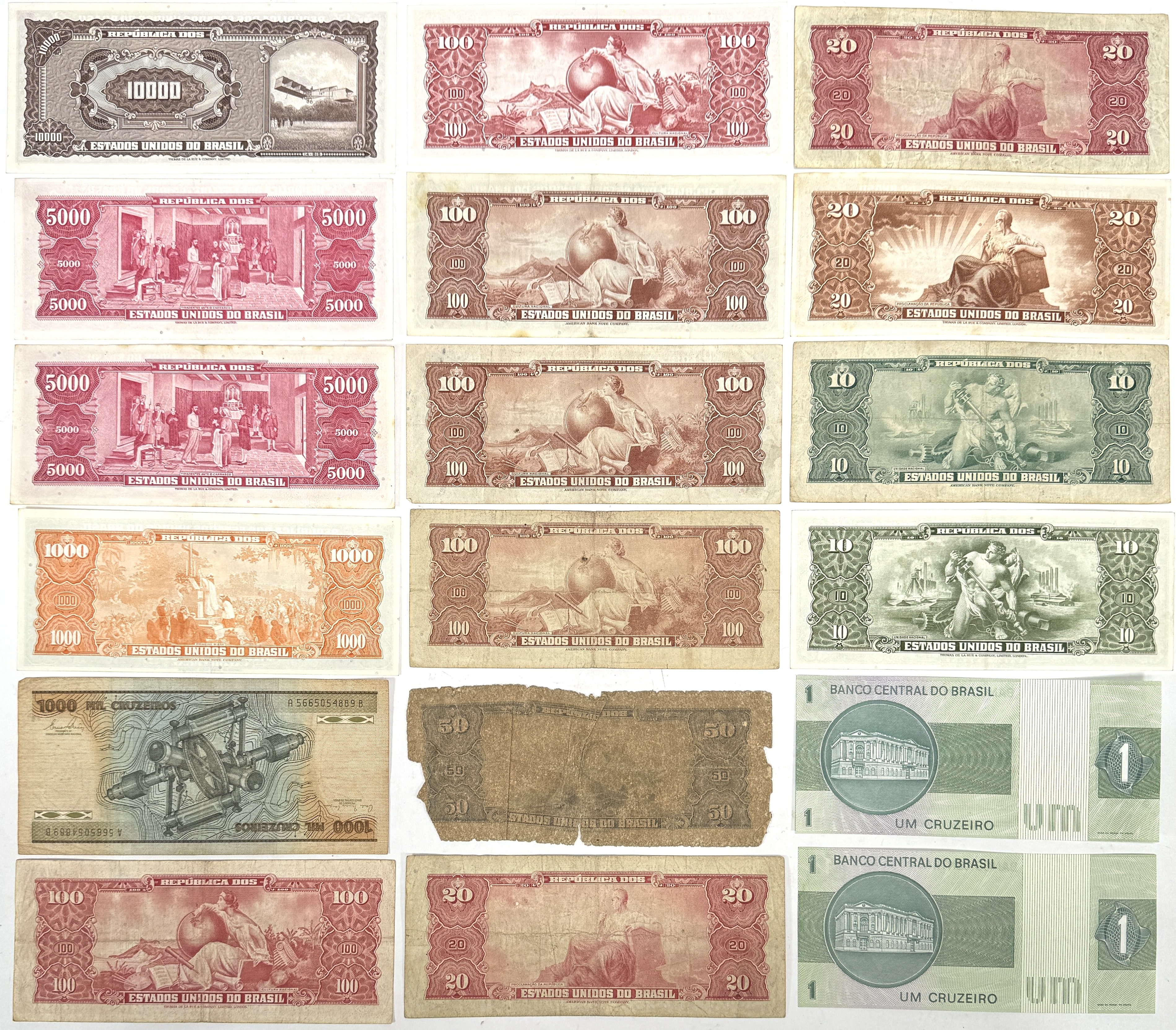 Bankbiljetten Brazilië, diverse coupures, 20e eeuw.