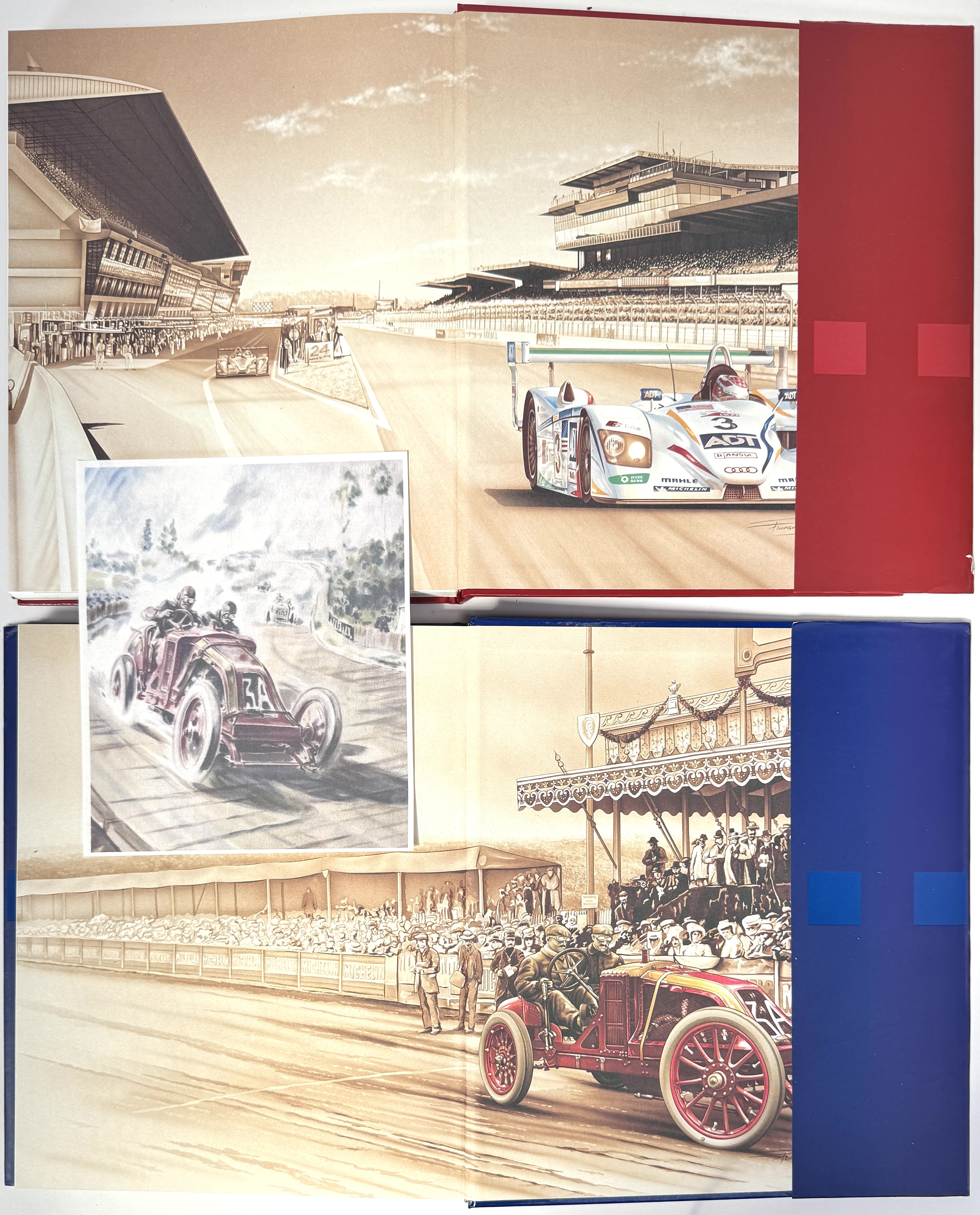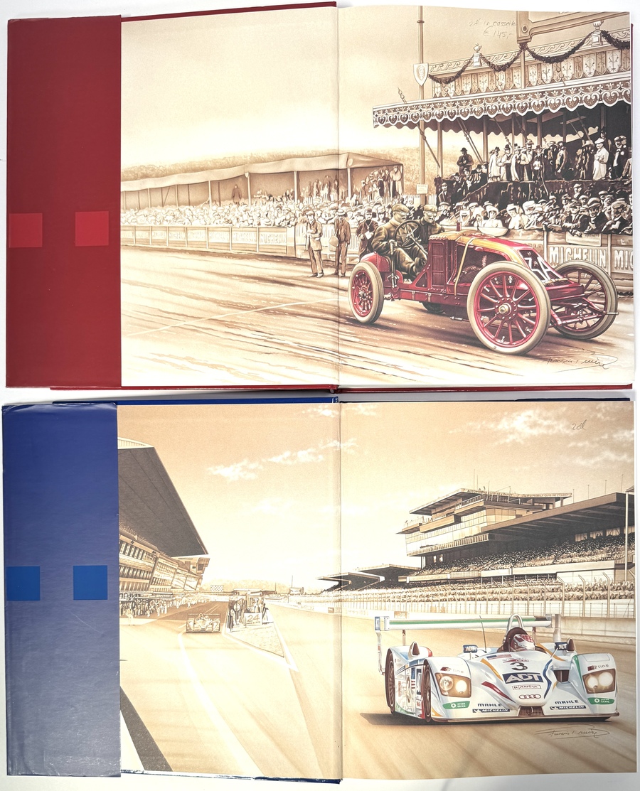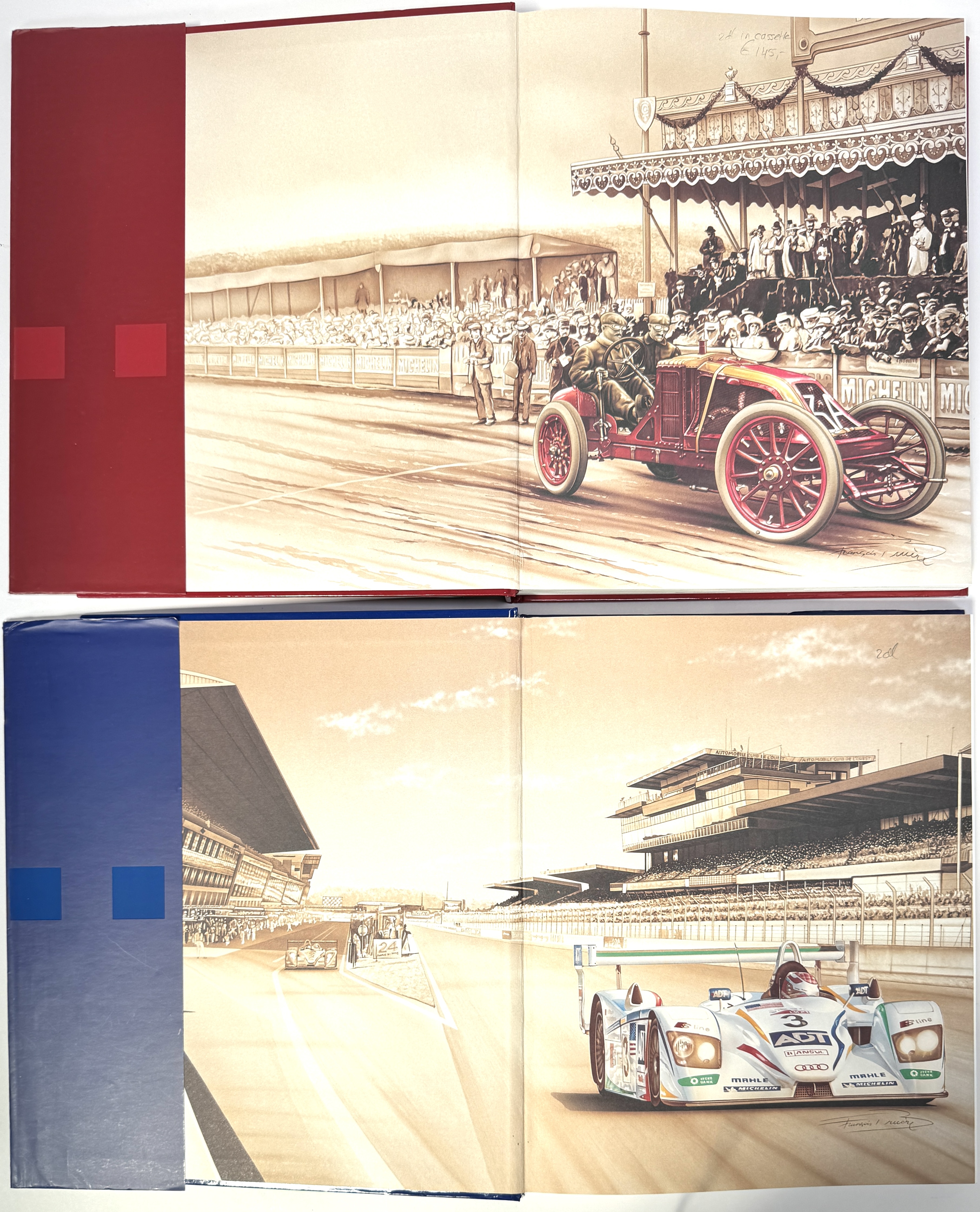 Twee hardcover boeken (gekartonneerd) met stofomslag in een cassette. Le mans, a century of passion with the Automobile Club de l’Ouest bestrijkt de periode 1906-2006. Oplage: 2500. Deze boeken zelf beoordelen? Je bent welkom op onze kijkdagen op 29, 30 en 31 augustus! |