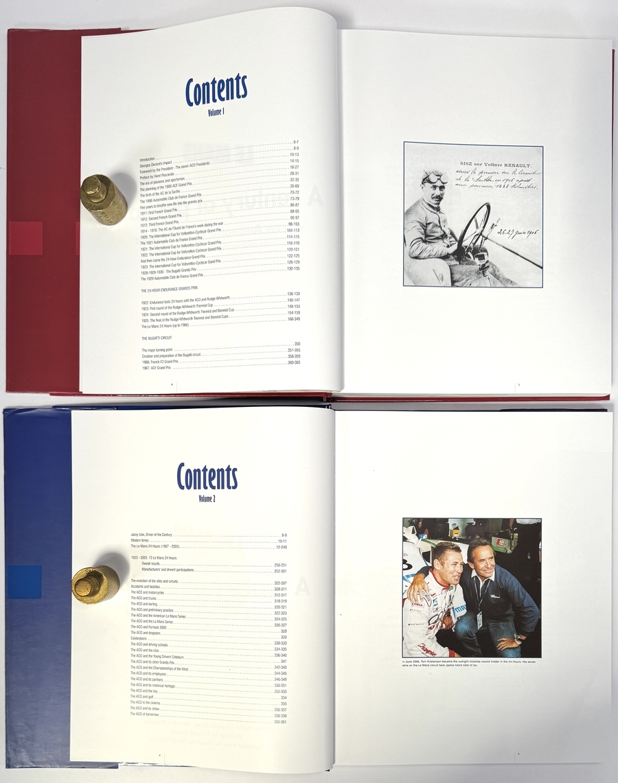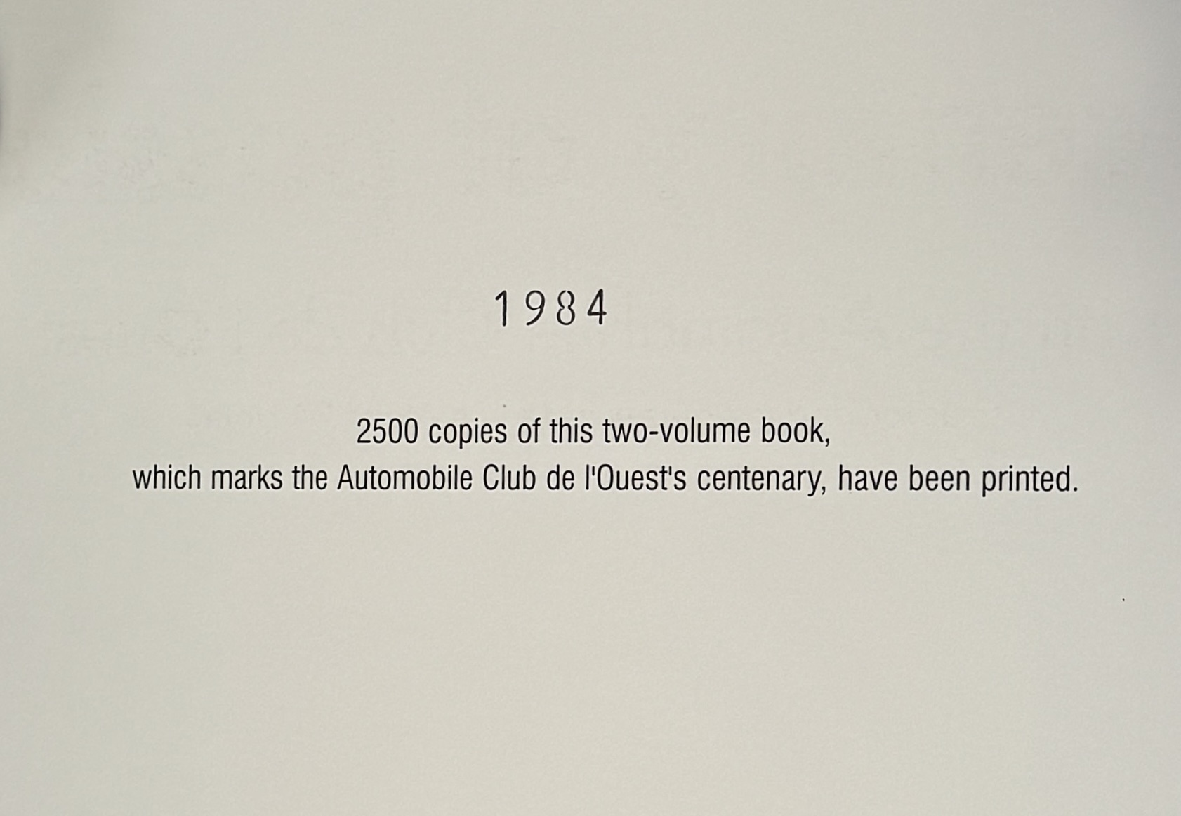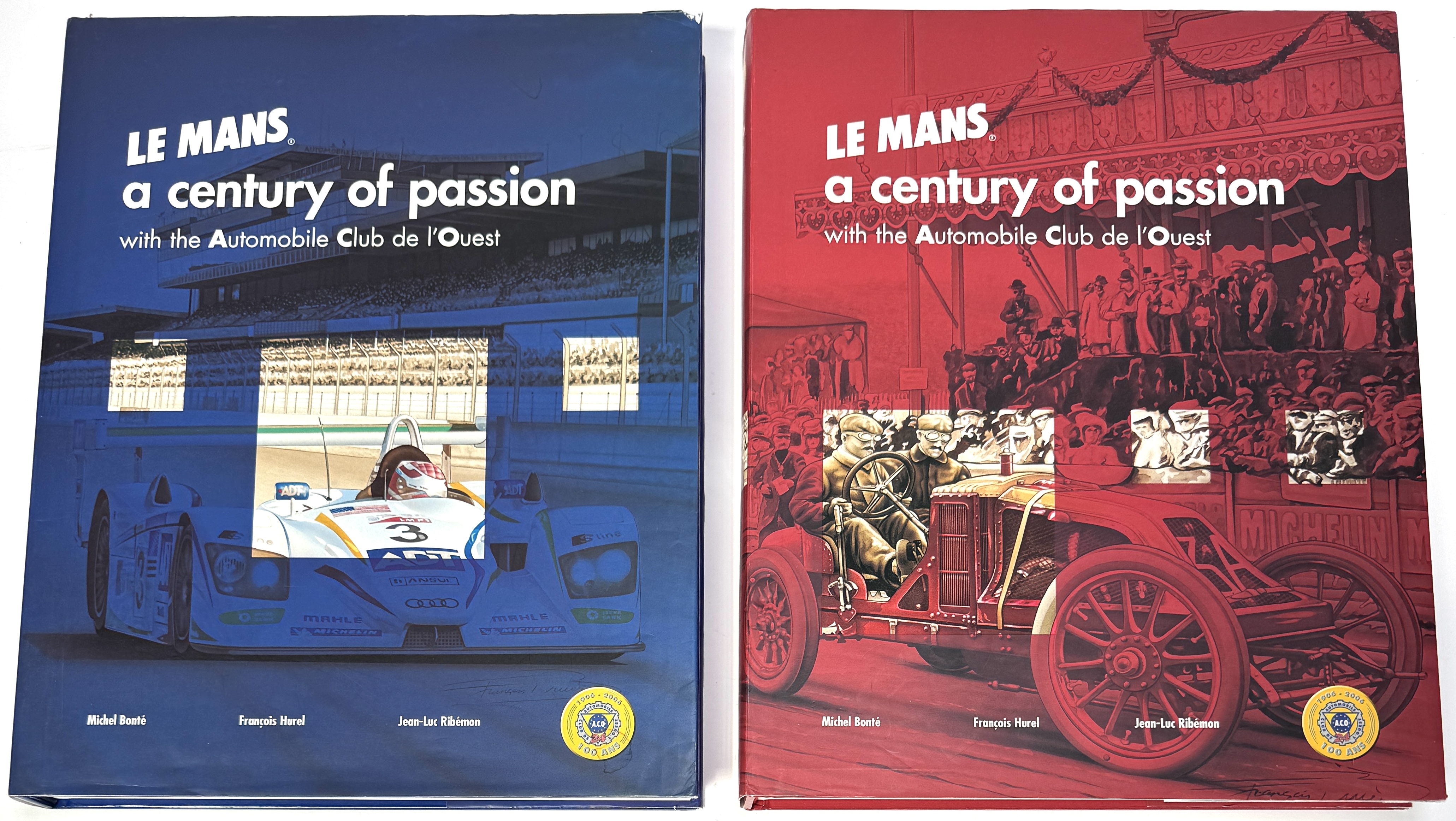 Twee hardcover boeken (gekartonneerd) met stofomslag in een cassette. Le mans, a century of passion with the Automobile Club de l’Ouest bestrijkt de periode 1906-2006. Oplage: 2500. Deze boeken zelf beoordelen? Je bent welkom op onze kijkdagen op 29, 30 en 31 augustus! |