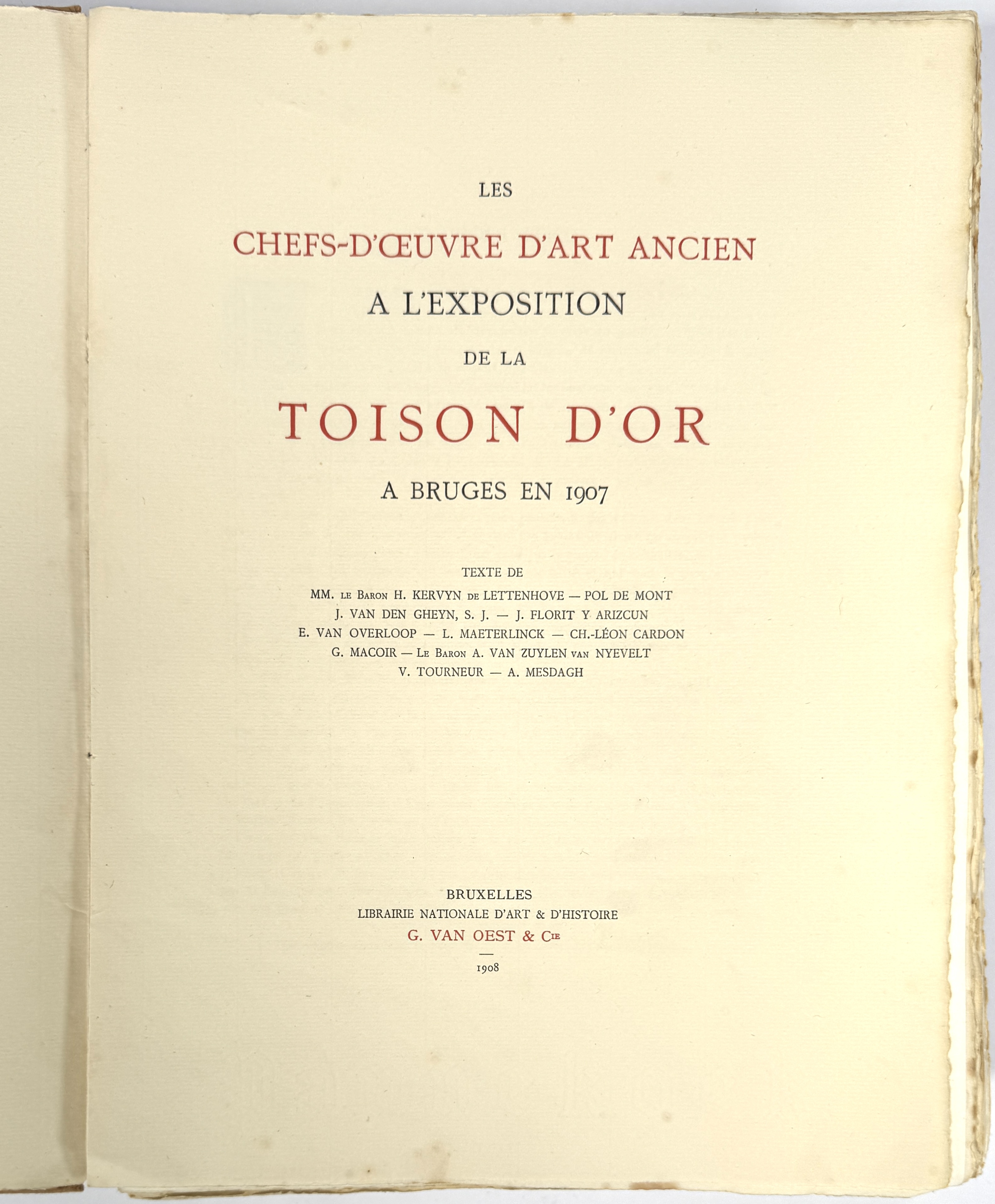 Les chefs-d’oeuvre d’art ancien (1908). Het Gulden Vlies geëxposeerd in Brugge (1907), met vele platen. Taal: Frans. Zien voordat u biedt? Bezoek onze kijkdagen op 29, 30 en 31 augustus van 11:00 tot 17:00 uur! |