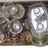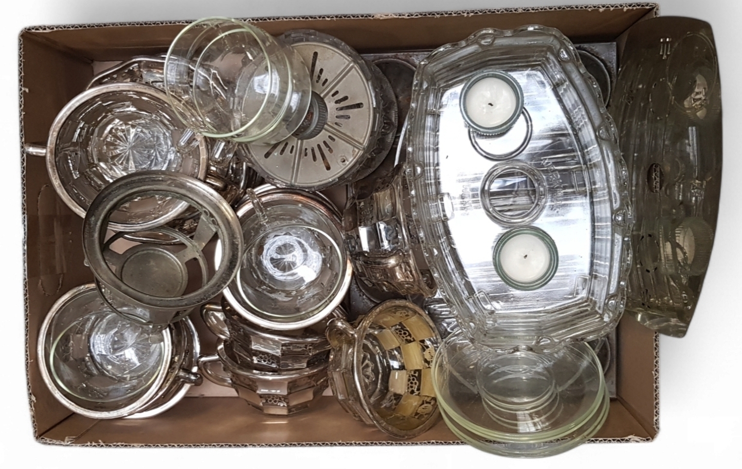 Lot glaswerk met diverse glazen voorwerpen, daterend uit de tweede helft van de 20e eeuw. De collectie omvat verschillende objecten waaronder kandelaars en kommetjes met zilverkleurige metalen monturen en handvatten. Registreer nu en bied eenvoudig online mee op dit glaswerk! |