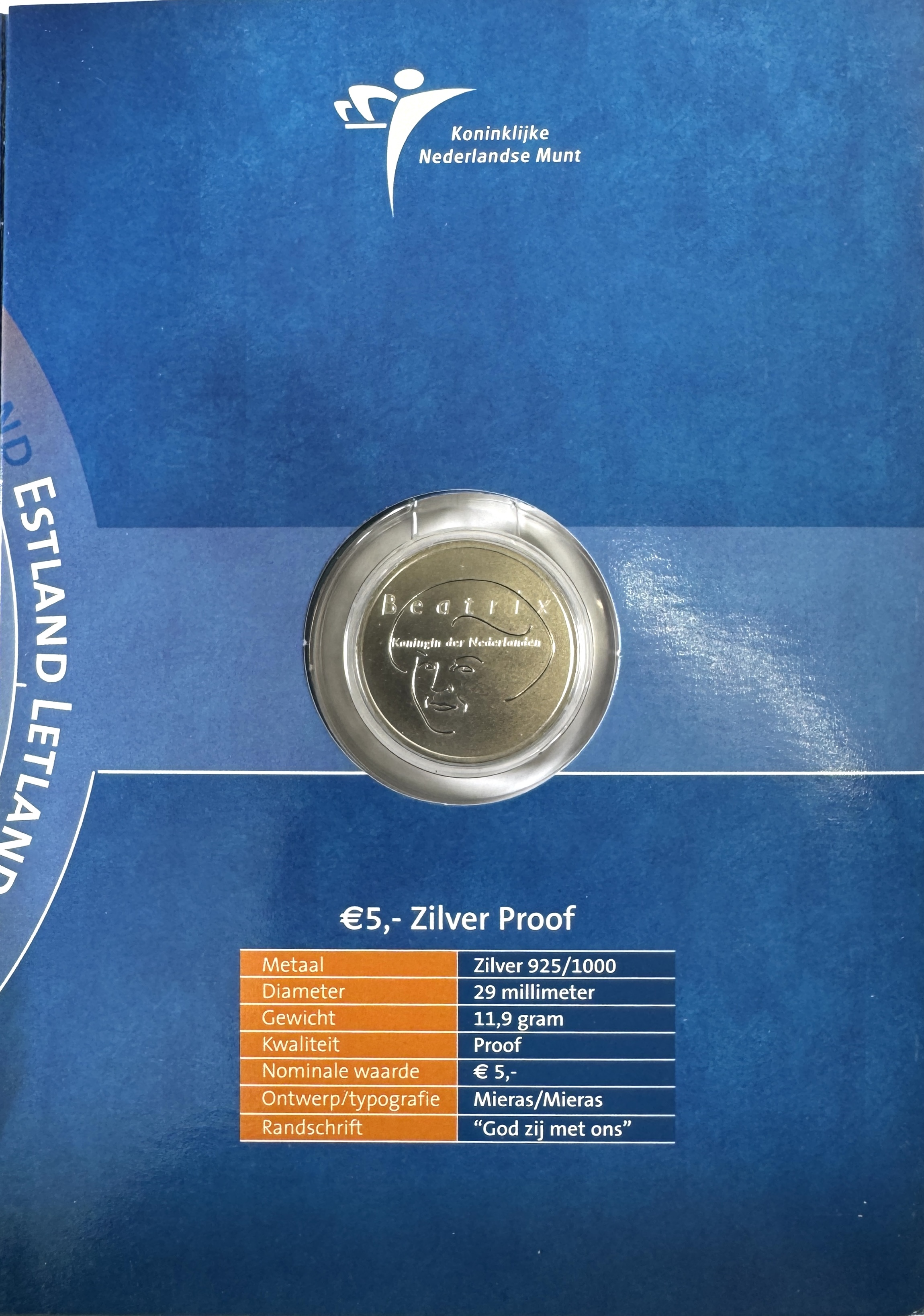 Een verzameling van zes herdenkingsmunten in originele verpakking, uitgegeven door de Koninklijke Nederlandse Munt. De munten zijn van zilver en verzilverde metalen en dateren uit 2005 en 2006. De collectie omvat de "Europamunt", "Het Vredes Vijfje", "Het Rembrandt Vijfje", "Het Australië Vijfje", de "Zilveren Jubileummunt" en de "Zilveren Koninkrijksmunt". Klaar om te bieden? Registreer je nu en doe mee aan de veiling! |