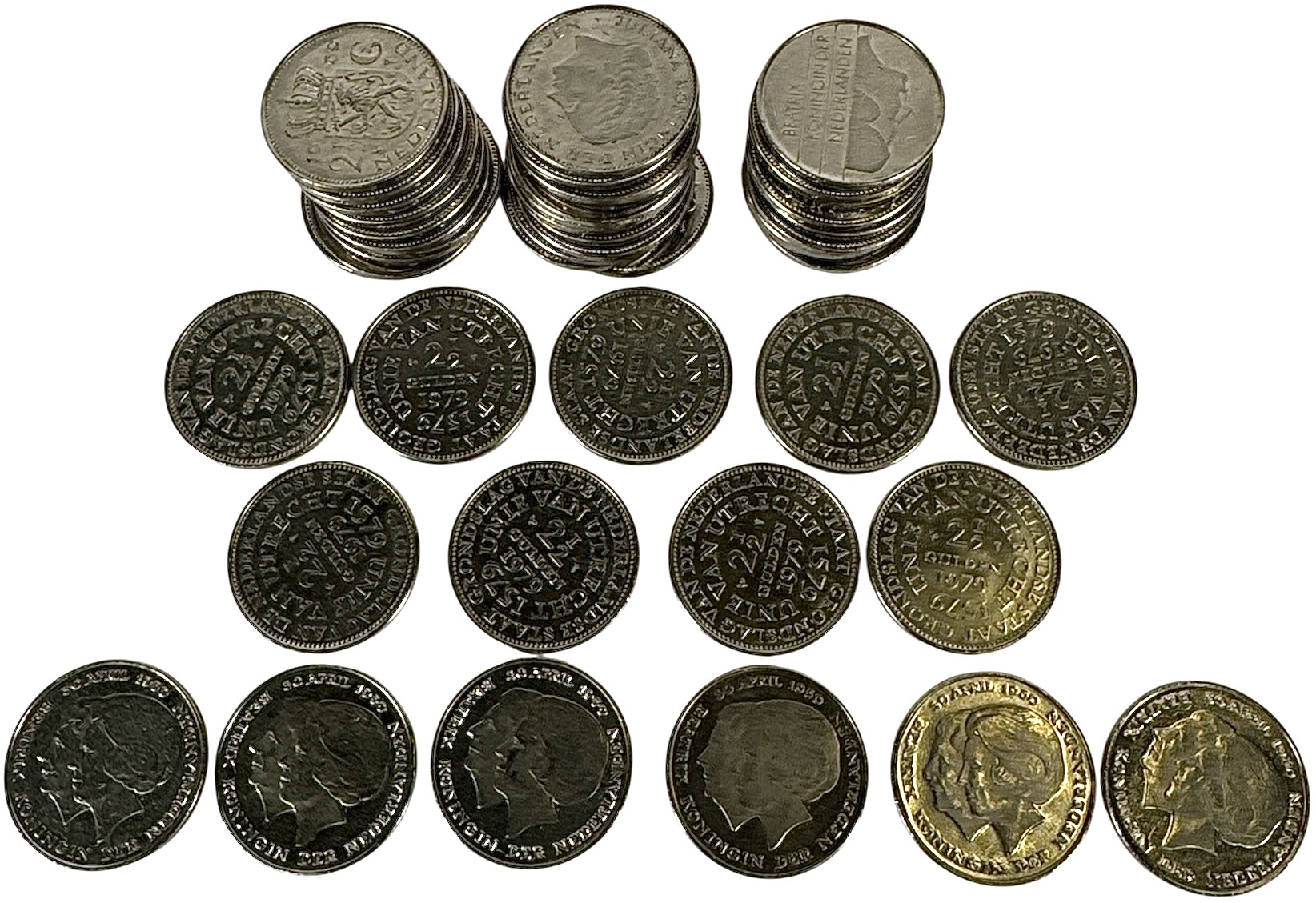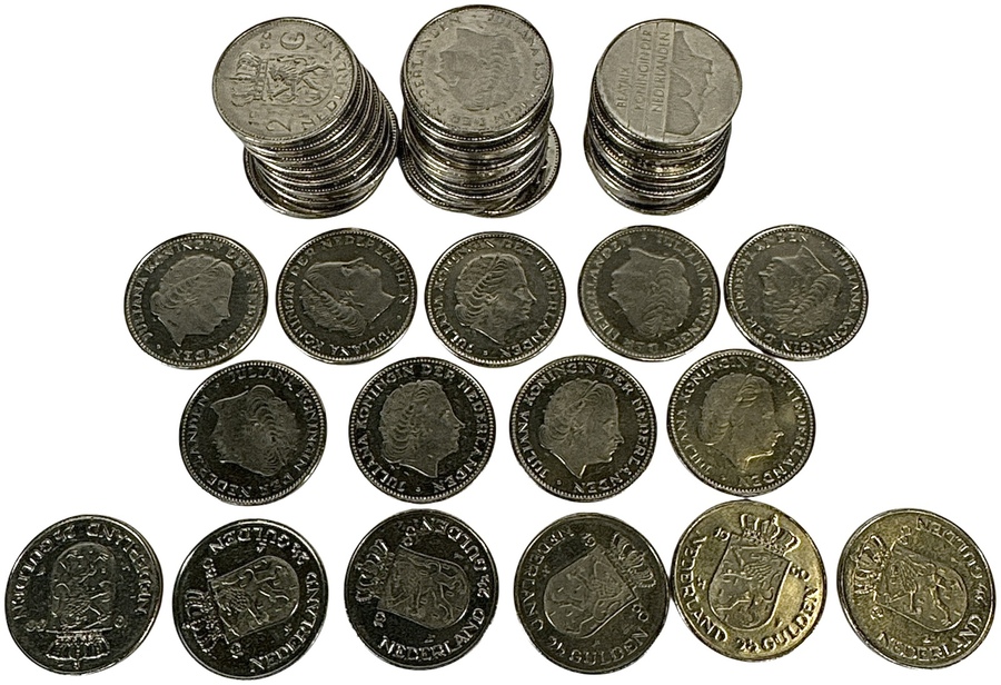 Verzameling Nederlandse rijksdaalders. De collectie omvat onder meer negen exemplaren van het type Unie van Utrecht en zes exemplaren van het type Dubbelkop. Eind 20e eeuw. Klaar om te bieden? Registreer je nu en doe mee aan de veiling! |
