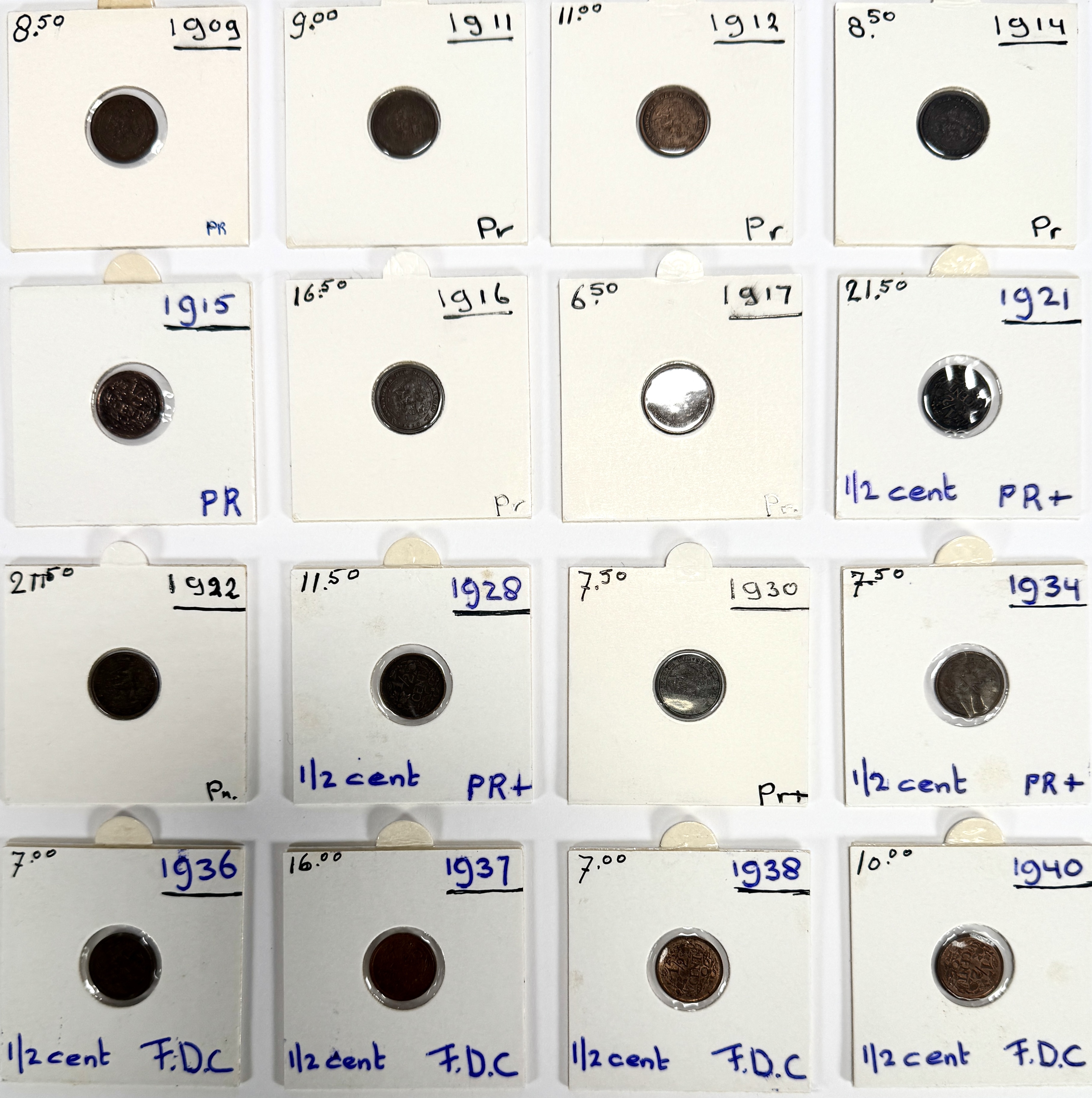 ½ cent munten, 1909-1940, Nederland