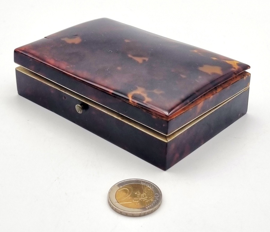 | Afmetingen | Tortoise doosje hoogte 3 cm en breedte 11,5 cm, goud bruto gewicht 24,98 gram. | |
