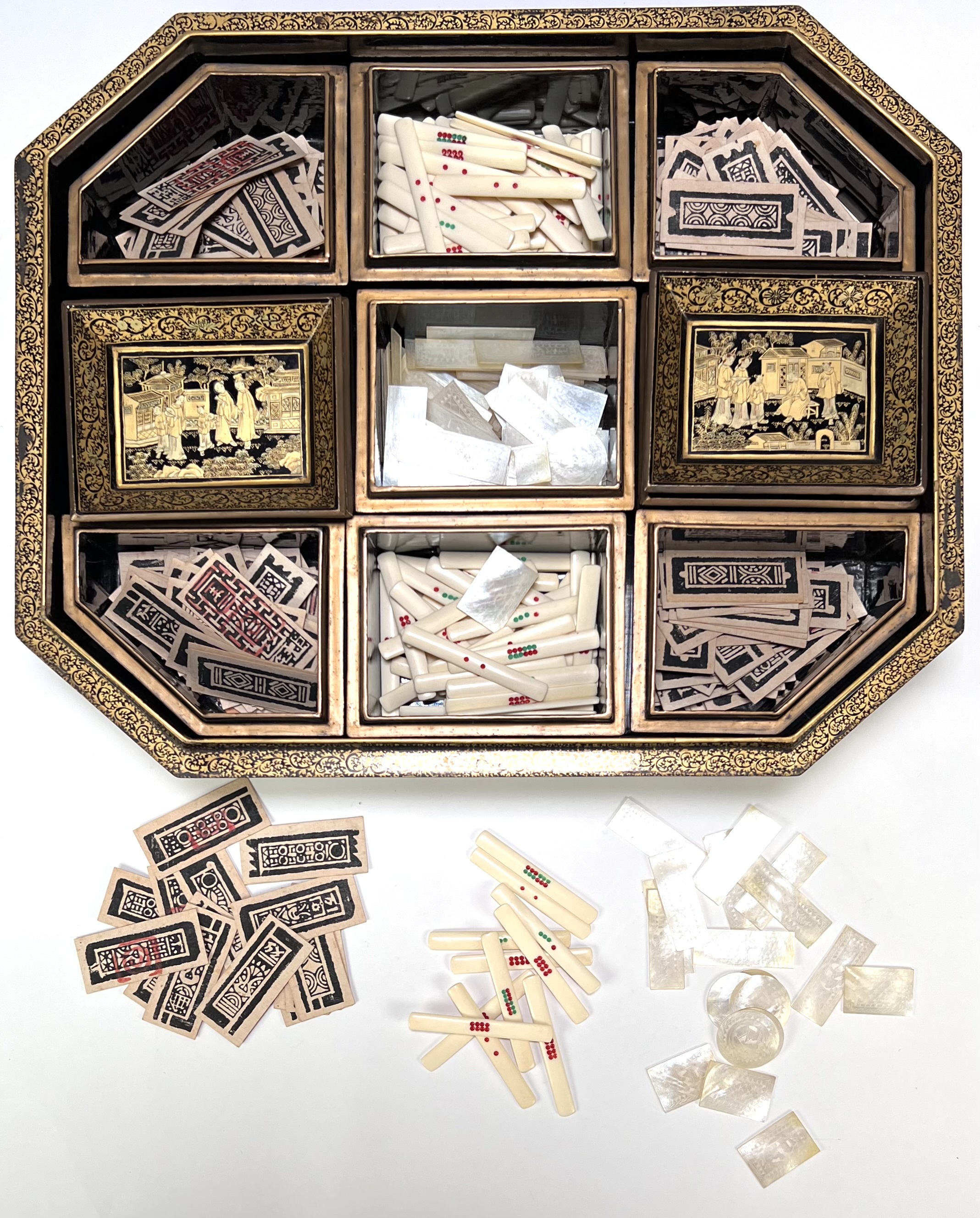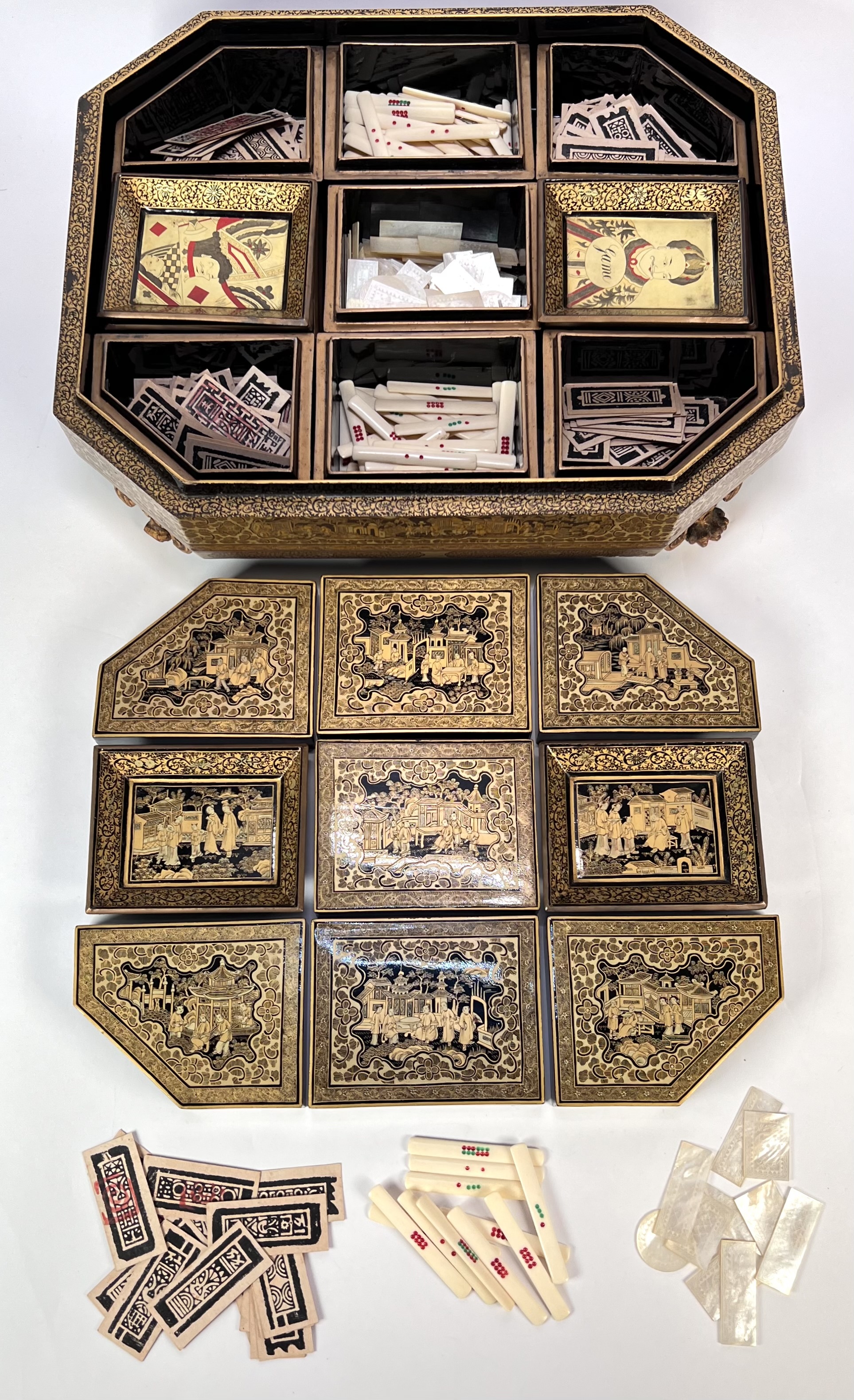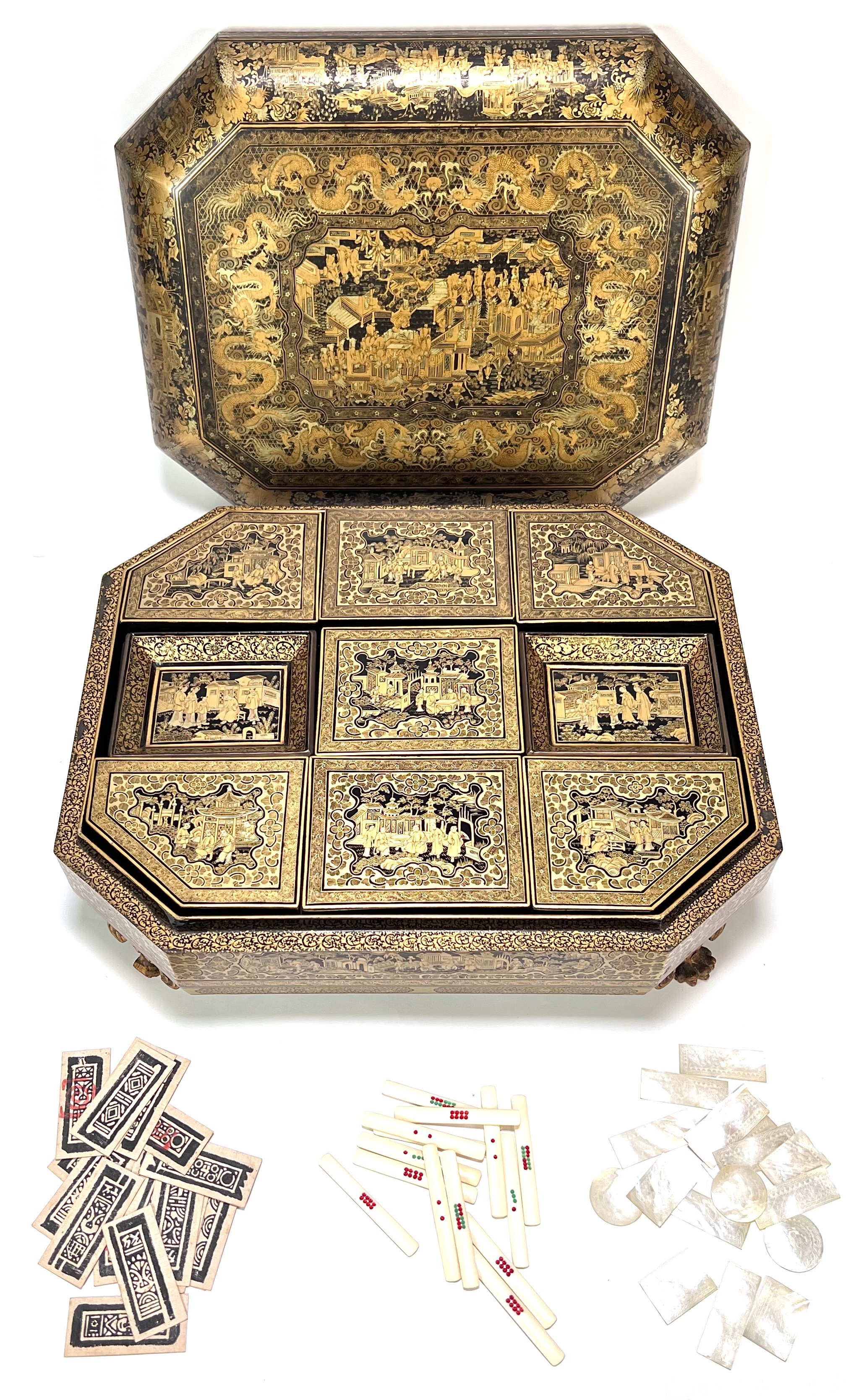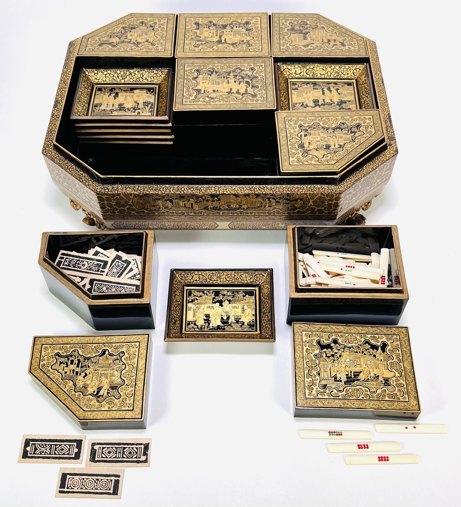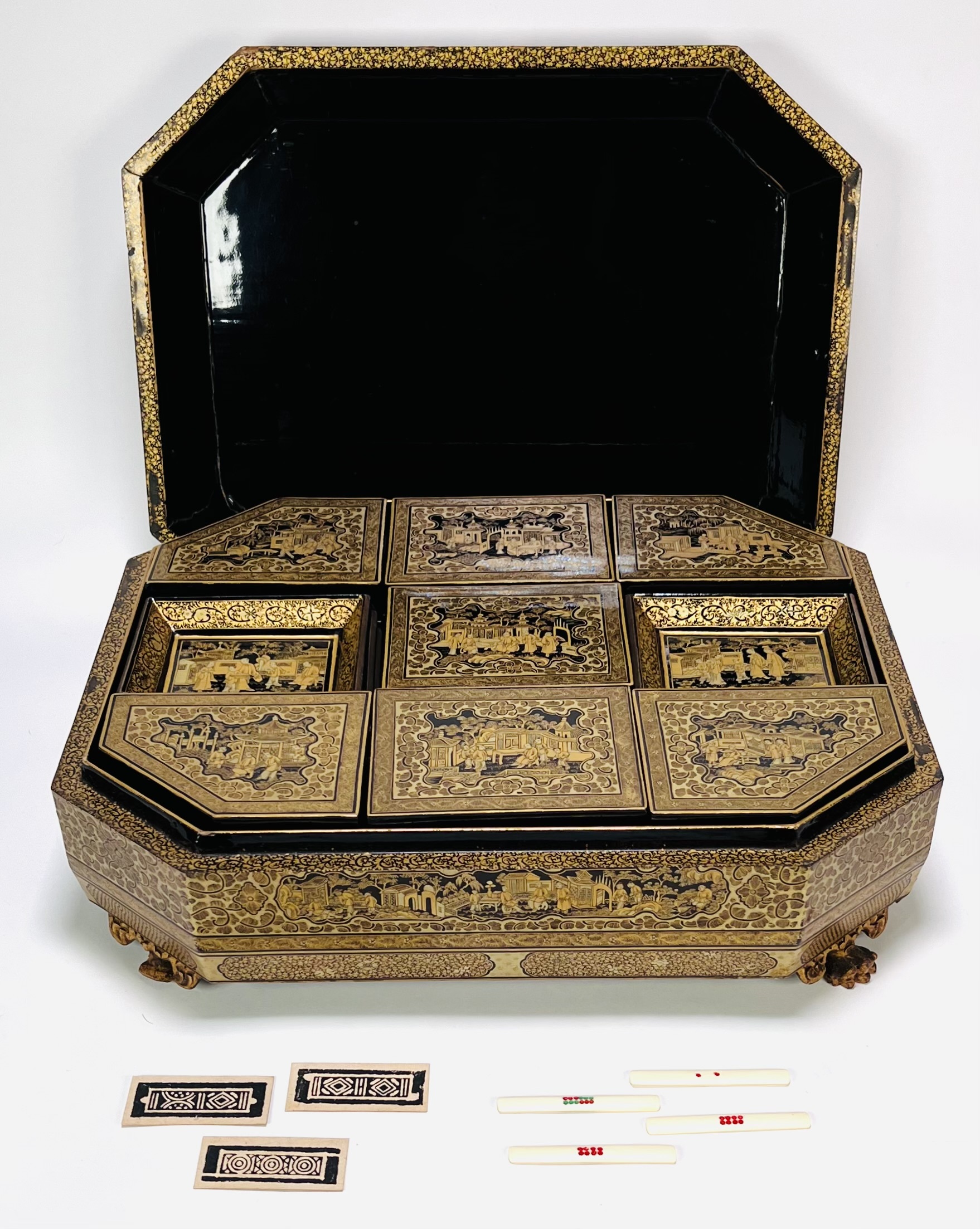 Lacquer mahjong doos met taferelen, China, ca. 1880