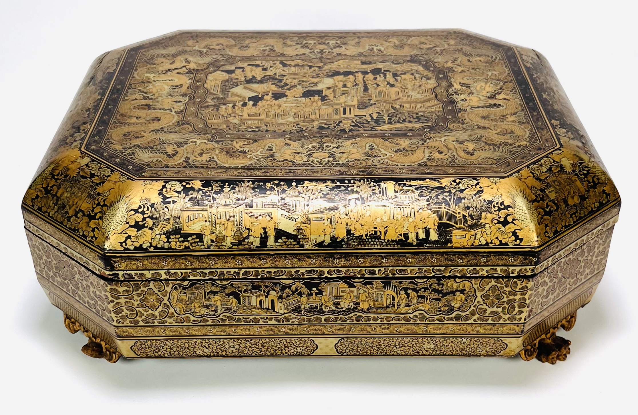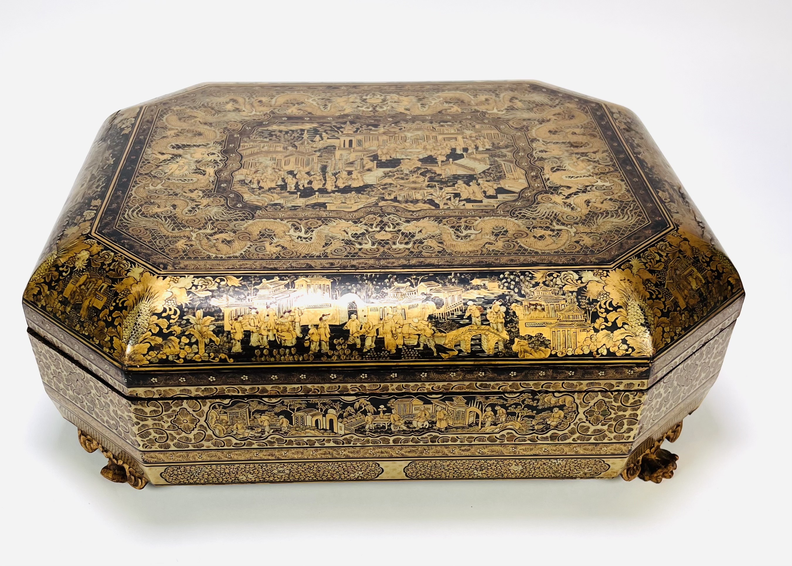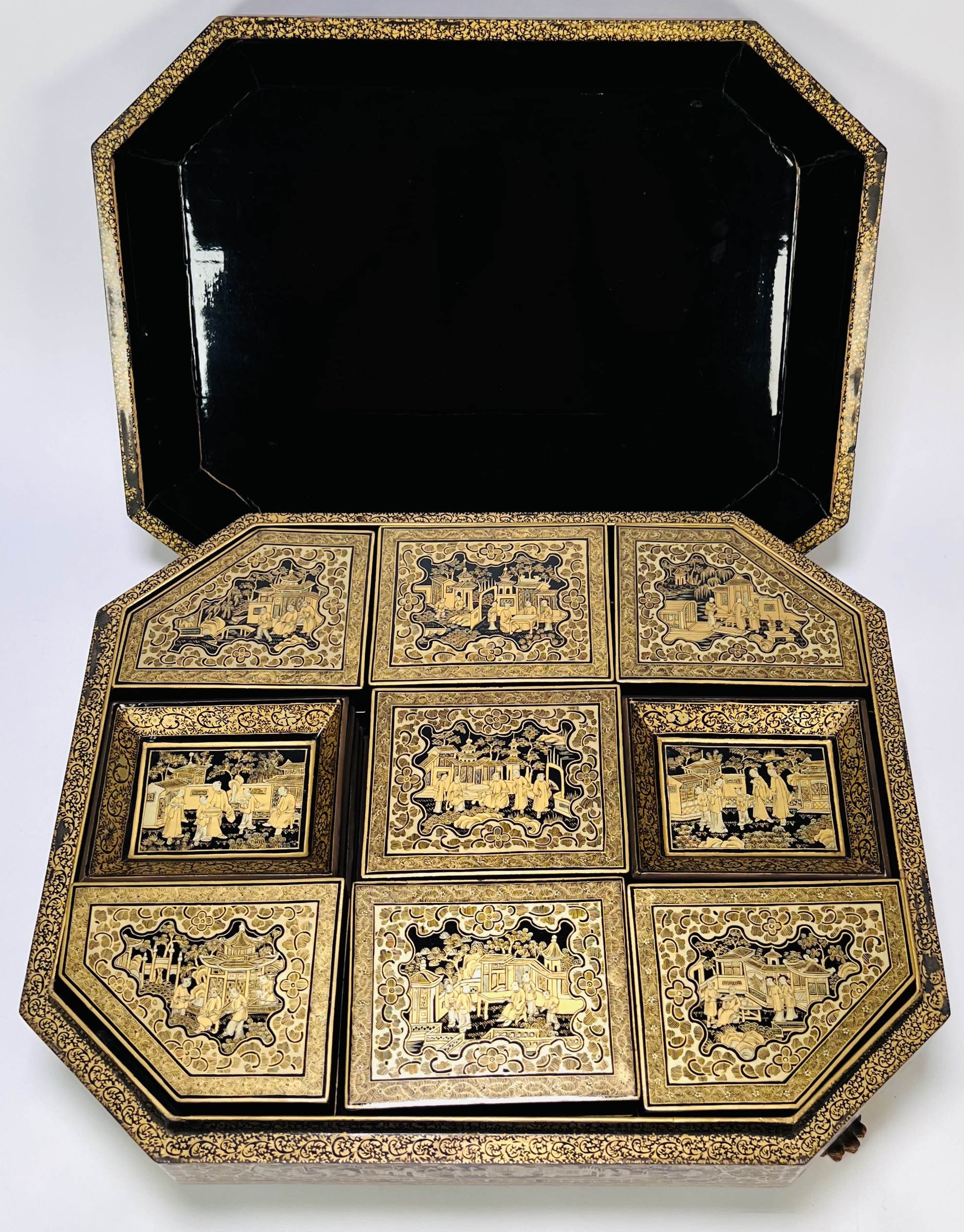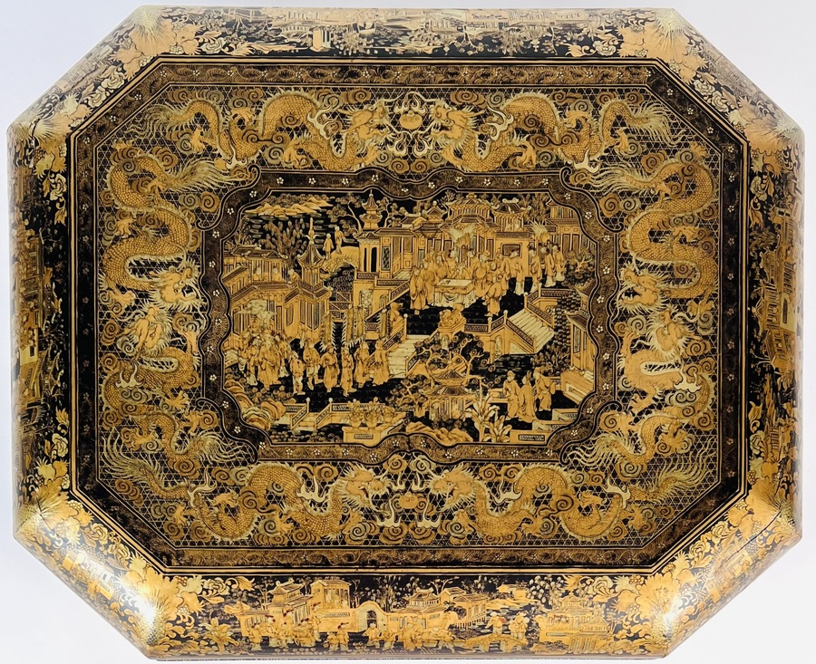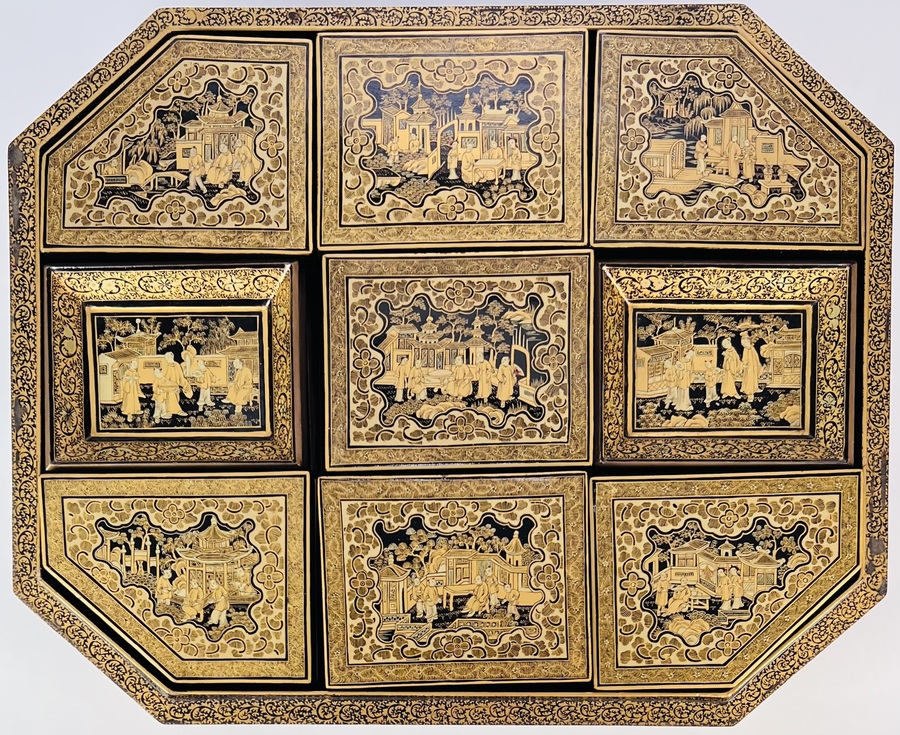 Lacquer mahjong doos met taferelen, China, ca. 1880