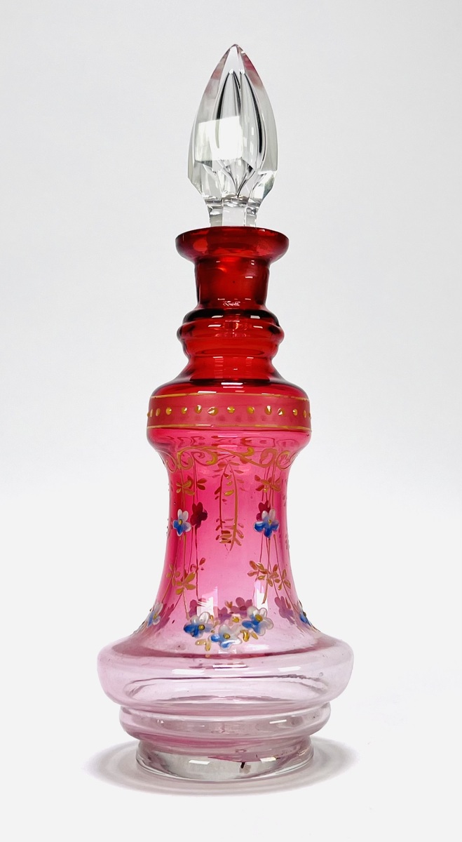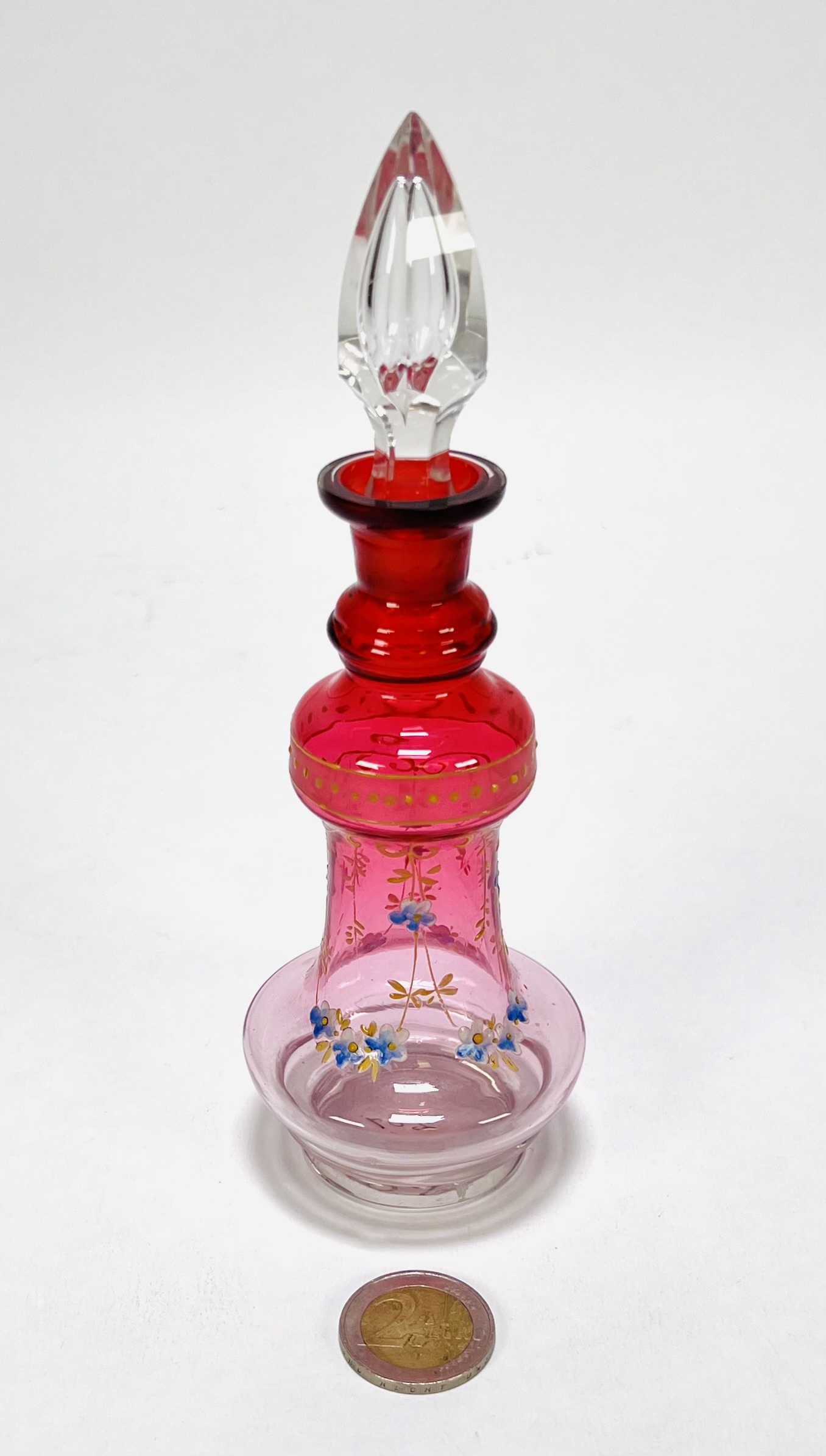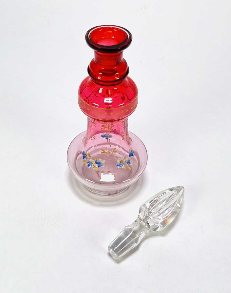 Glazen parfumflesje met florale decoratie, Bohemen, eind 19e eeuw
