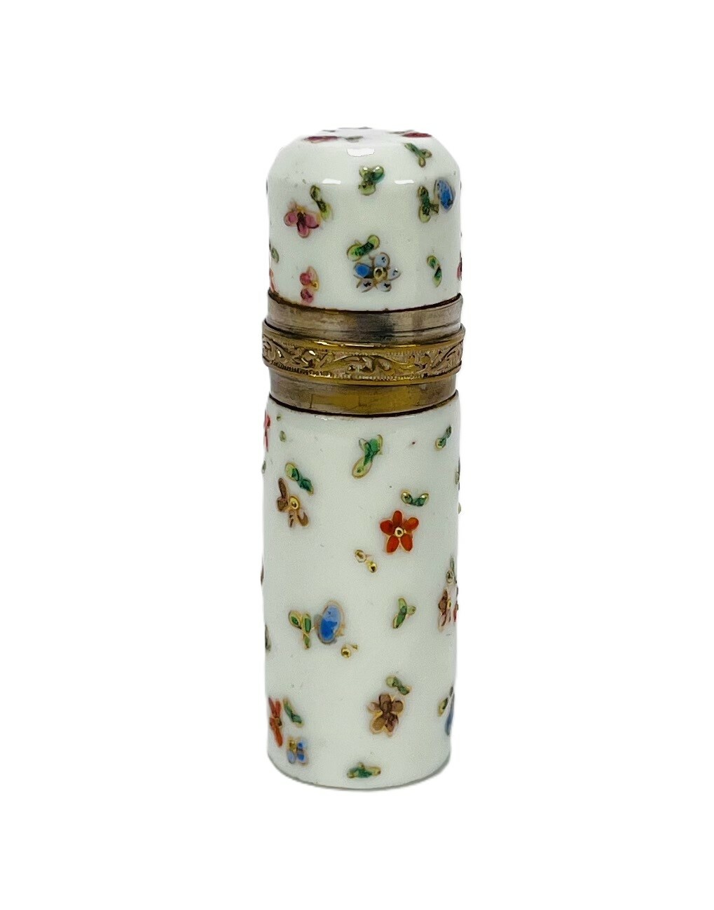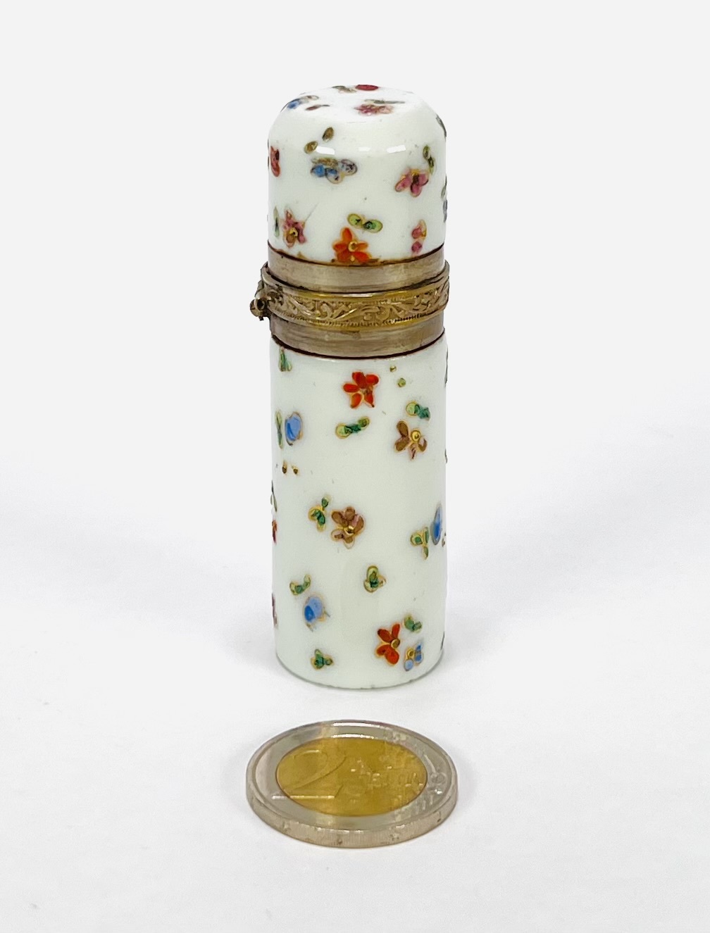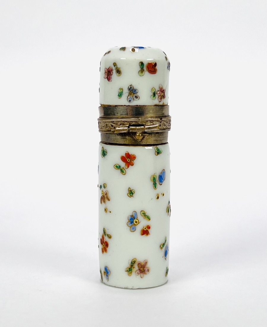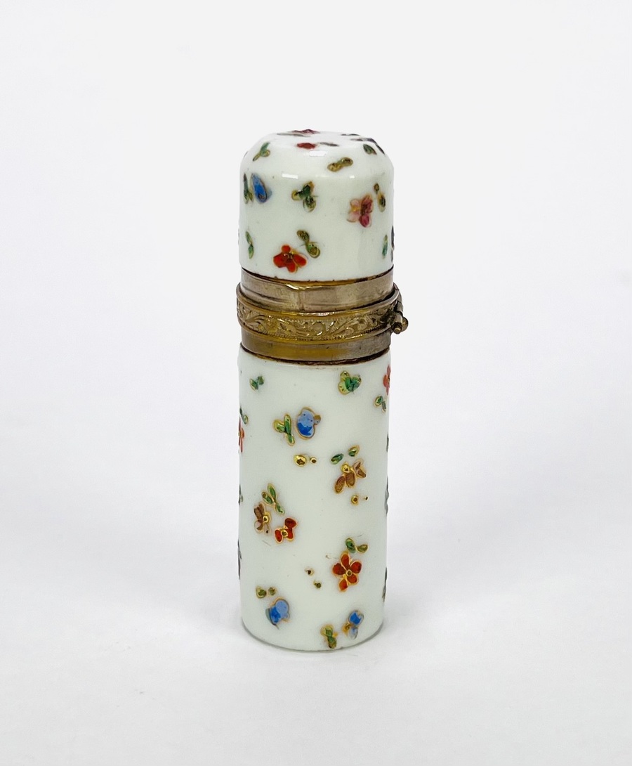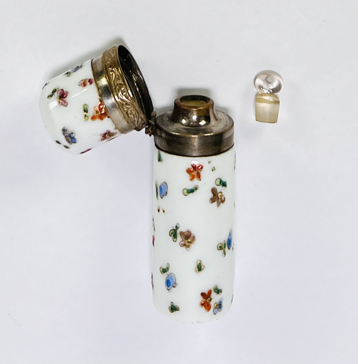 Porseleinen parfumflesje met bloemendecoratie, midden 19e eeuw