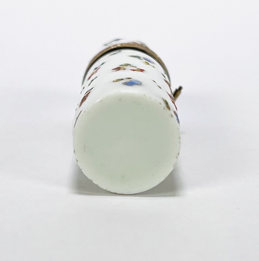 Porseleinen parfumflacon, omstreeks midden 19e eeuw, met handgeschilderde polychrome bloemendecoratie en vergulde metalen monturen. Uitgevoerd met een scharnierend deksel en glazen stop. Rococo-geïnspireerd, bedoeld voor persoonlijk gebruik tijdens reizen. Opvallend zijn de rijke florale motieven rondom en de fijne graveringen op het montuur. Zeker zijn van deelname? Plaats vanaf 22 augustus een schriftelijk bod online! |