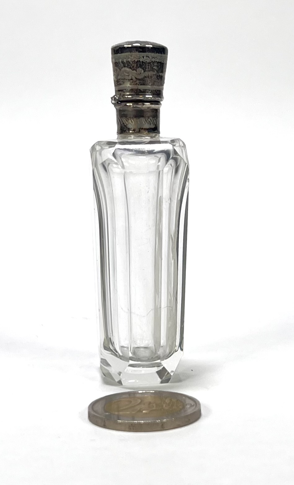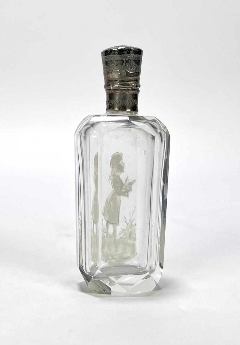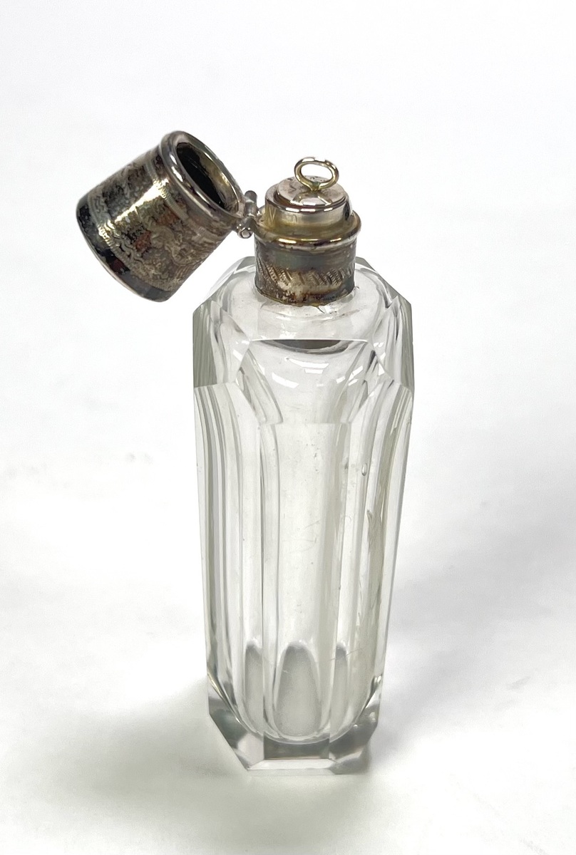 Kristallen parfumflesje met zilveren montuur, eind 19e eeuw