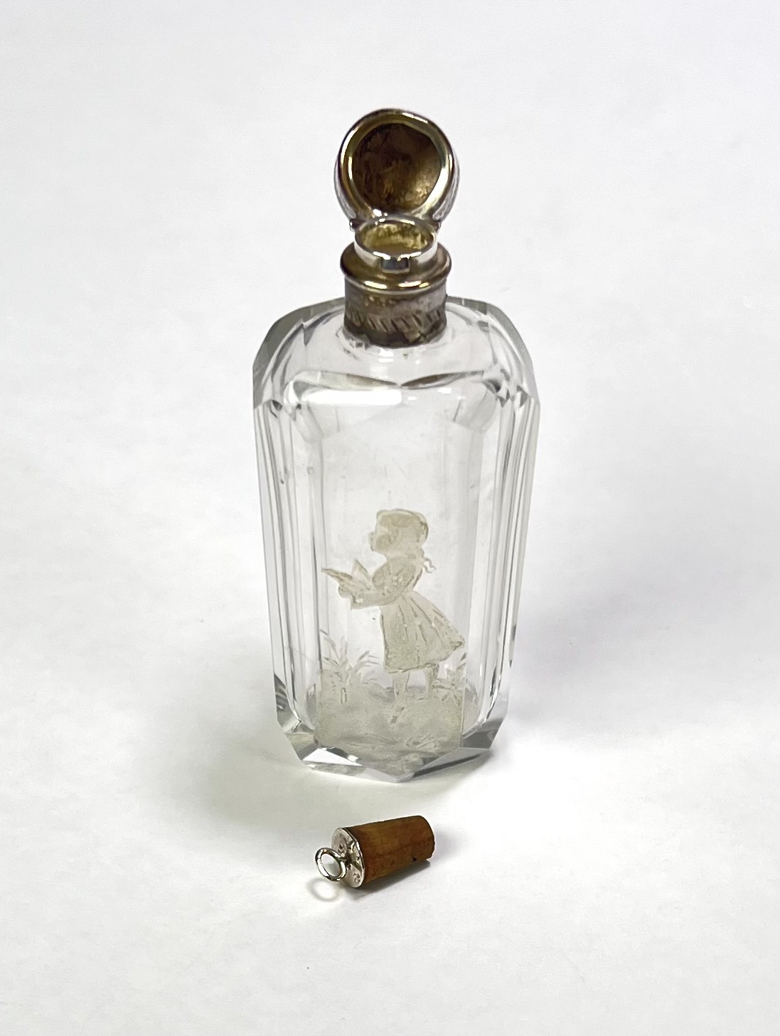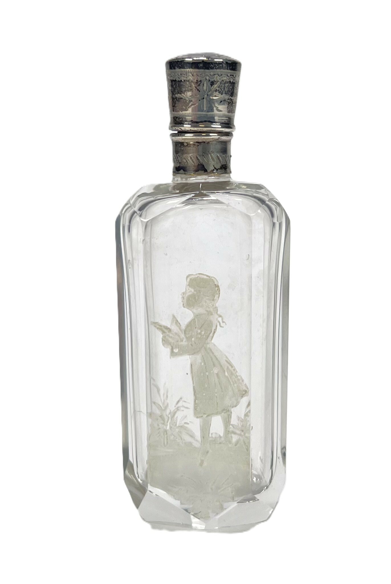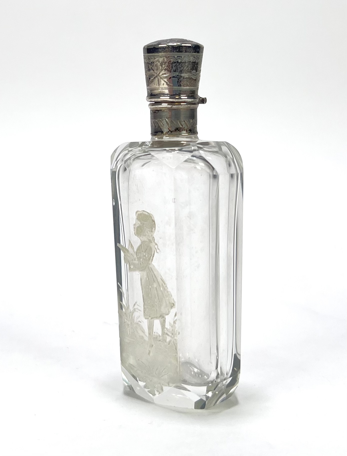 Kristallen parfumflesje met zilveren montuur, eind 19e eeuw