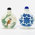 Twee porseleinen snuifflesjes, midden 20e eeuw, in traditionele Chinese stijl. Eén flesje met floraal kobaltblauw decor, het andere flesje met handbeschilderde meerkleurige voorstelling van een vogel in bamboe en bloesem. Gedraaid en geglazuurd, elk met stopje. Wilt u bieden? Schrijf u in en doe mee aan de veiling! |