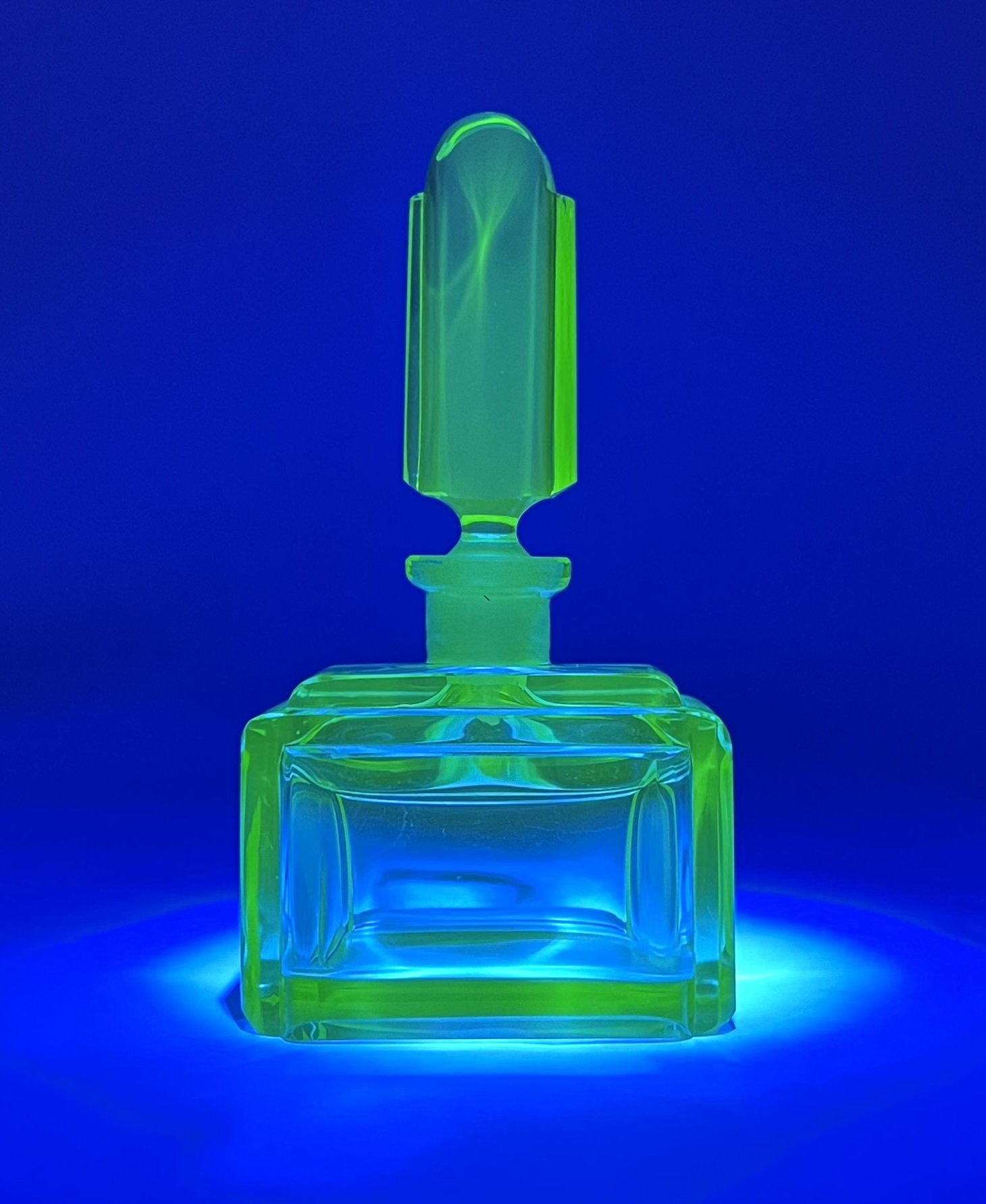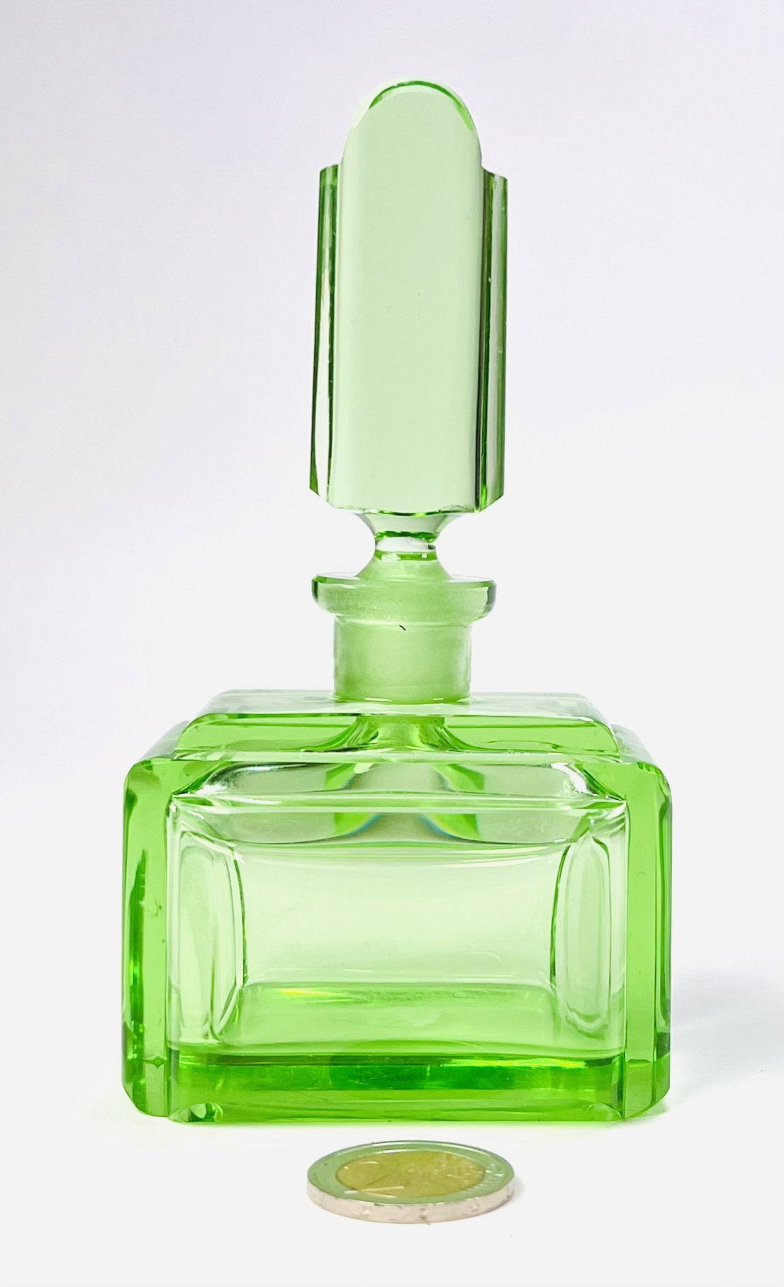Art Deco uraniumglas parfumfles, ca. 1920-1940
