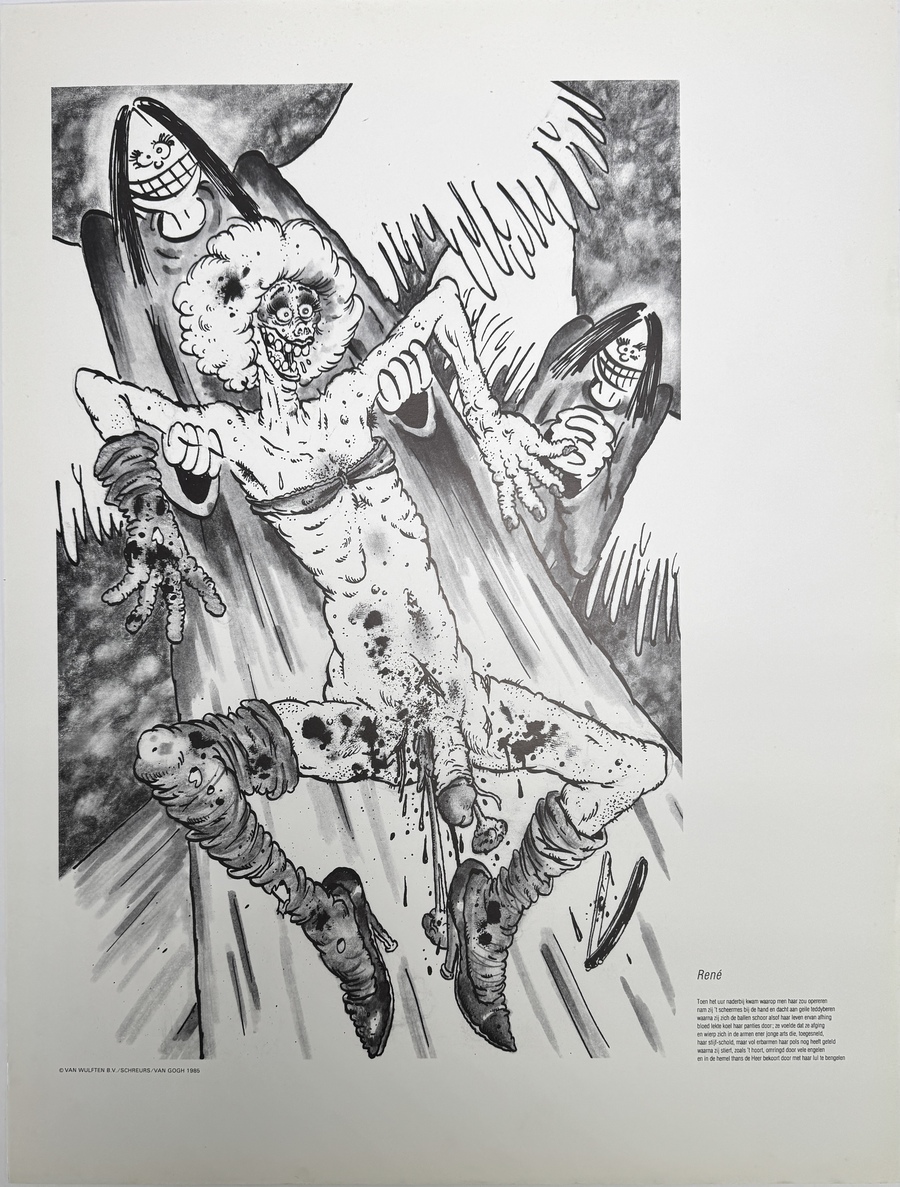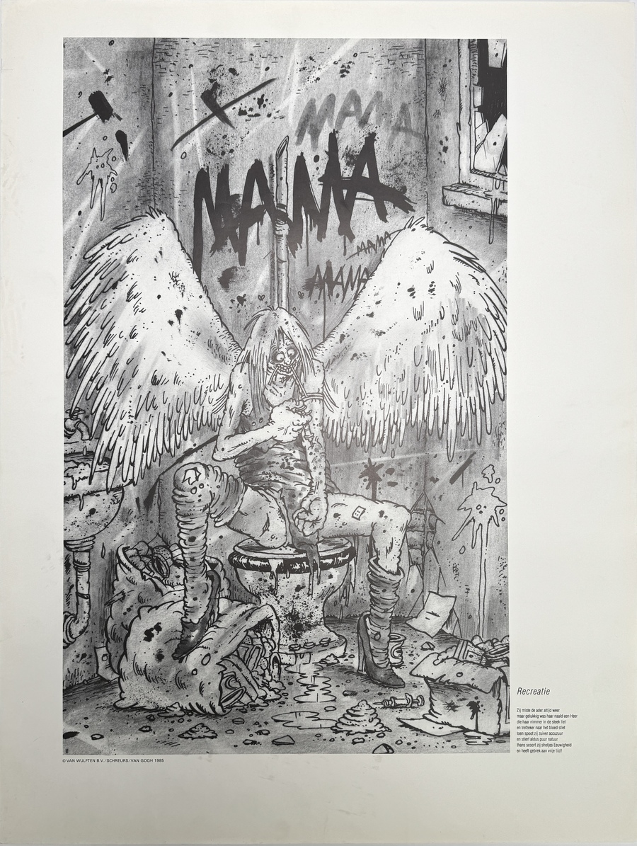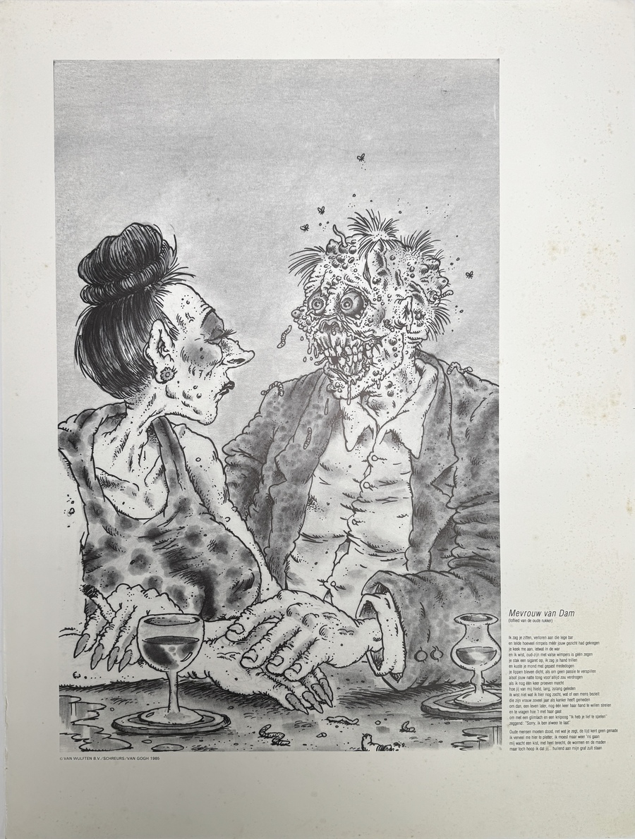 Recreatie 10 Menslievende Posters van Eric Schreurs (1958-2020) met gedichten van Theo van Gogh (1957-2004). Compleet. Uitgave: 1985. Kom kijken op 29, 30 of 31 augustus (11:00-17:00 uur) en ervaar het zelf! |