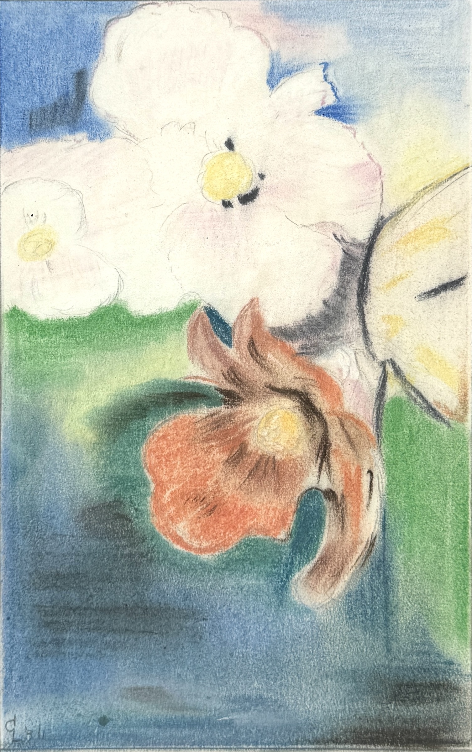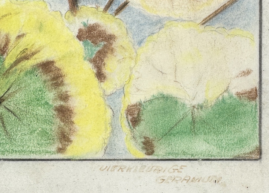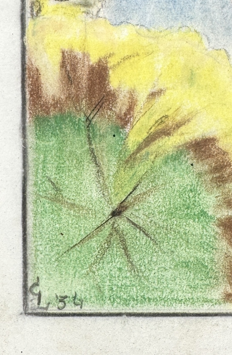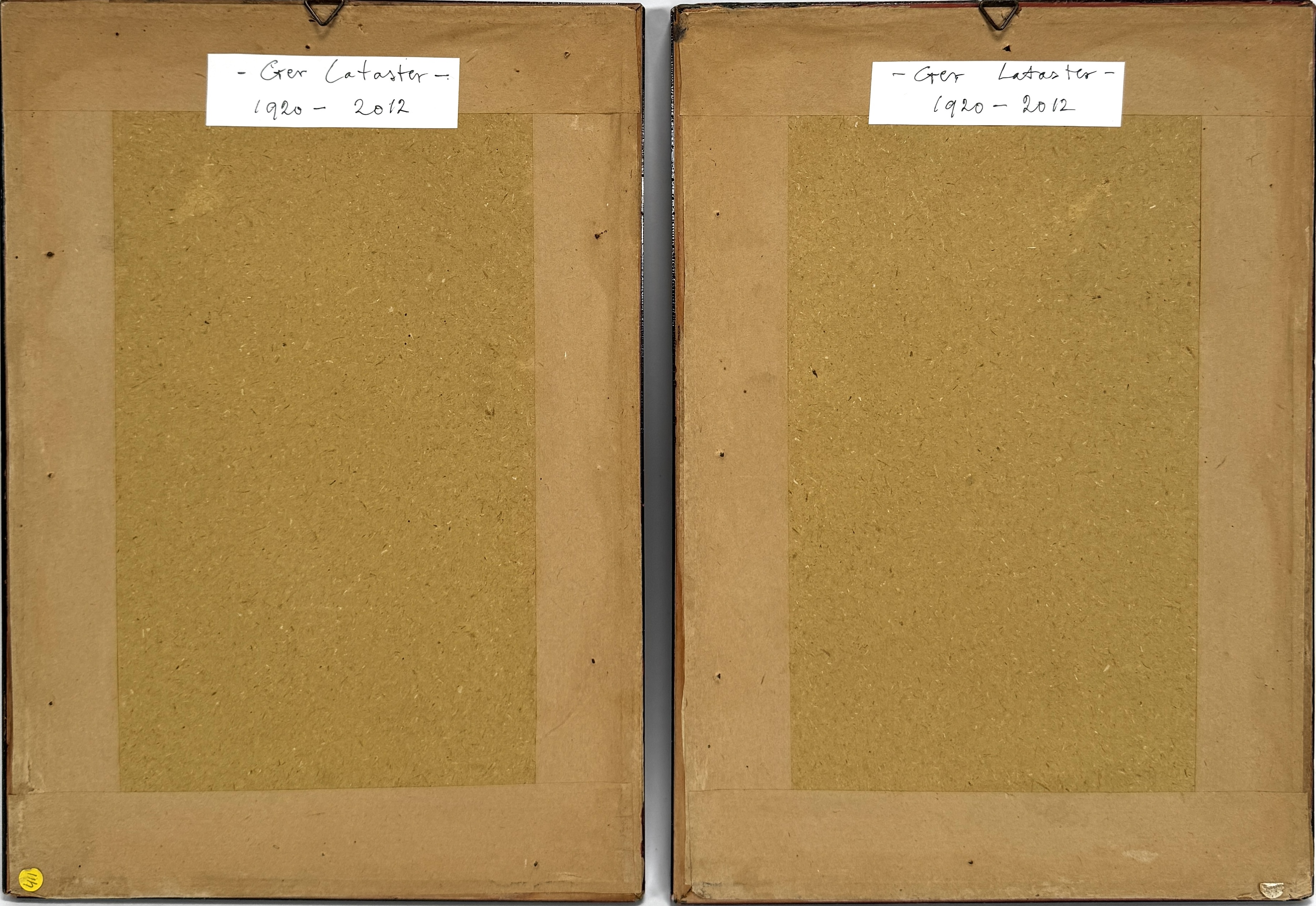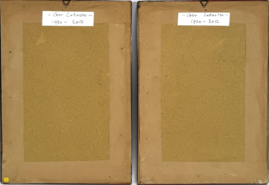Twee tekeningen in gemengde techniek. pastelkrijt en potlood op papier, gedateerd 1934, toegeschreven aan Ger Lataster. Het linker werk is getiteld "Wilde Begonia" en het rechter "Vierkleurige Geranium". Beide werken tonen gestileerde florale voorstellingen in een helder kleurenpalet. Gesigneerd linksonder met monogram en gedateerd 34 linksonder op elk werk, voorzien van de titels onderaan. Eerst zien voordat je biedt? Bezoek onze kijkdagen op 29, 30 en 31 augustus van 11:00 tot 17:00 uur! |