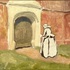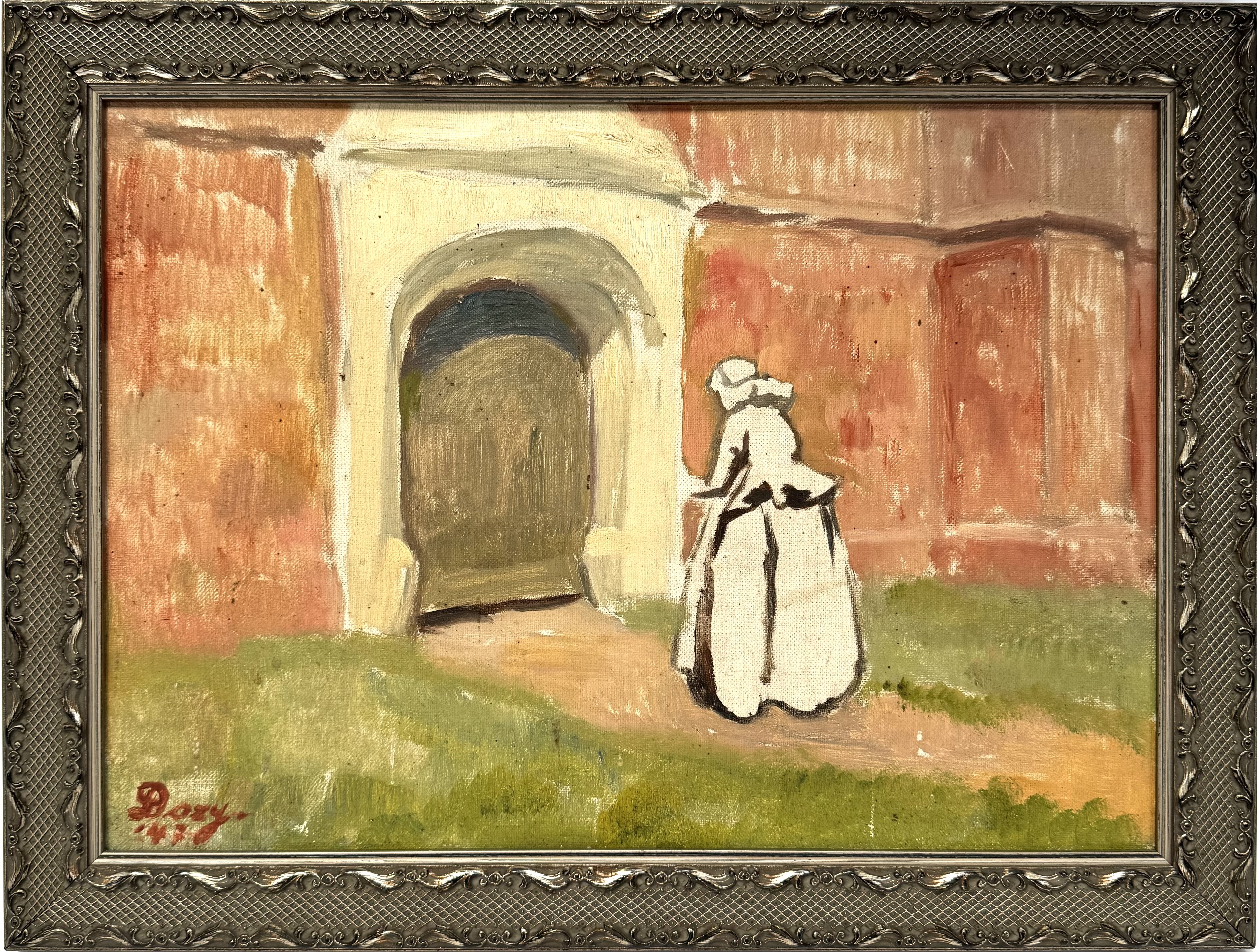 Olieverfschilderij Reinhart Dozy, vrouw bij poort, 1947