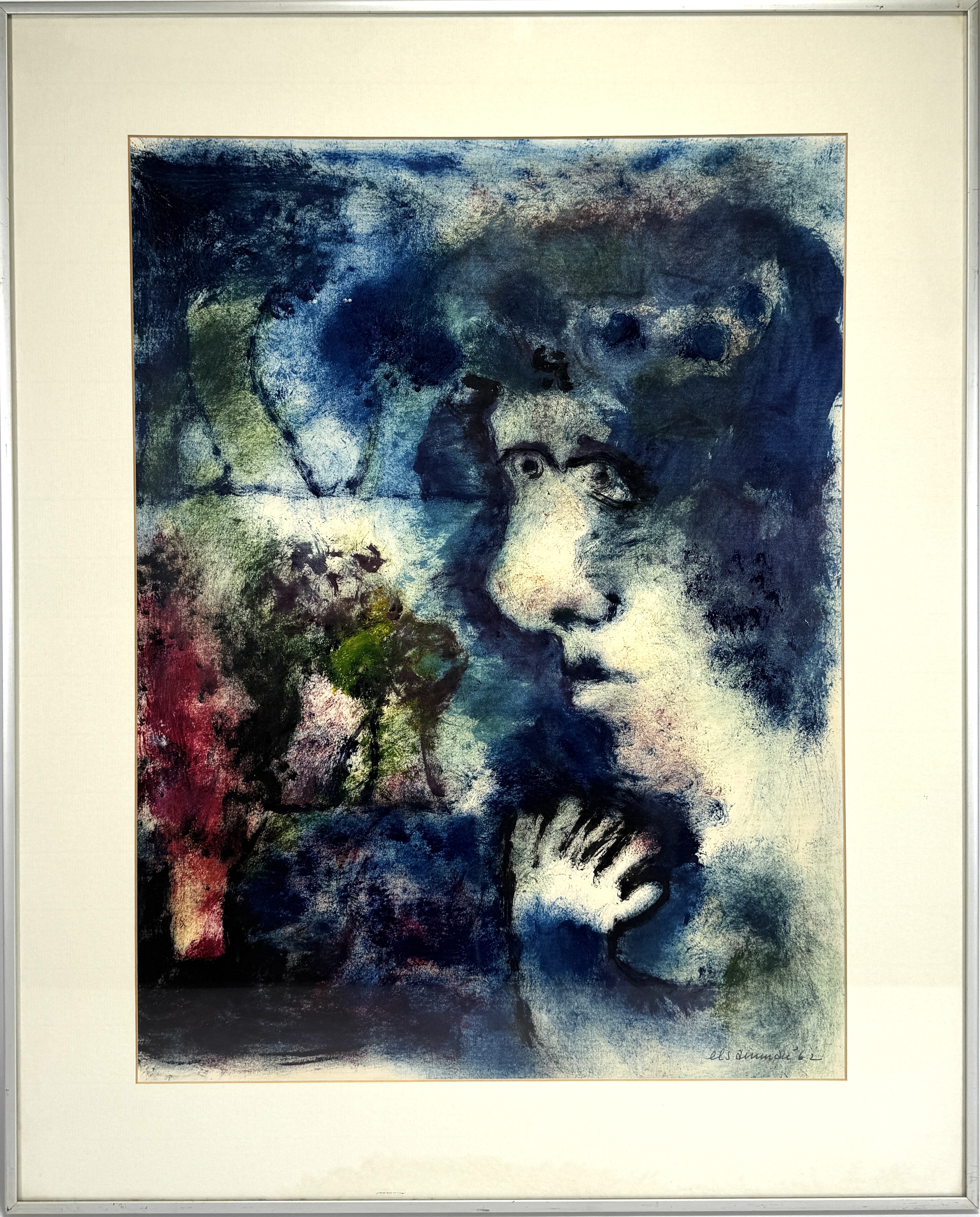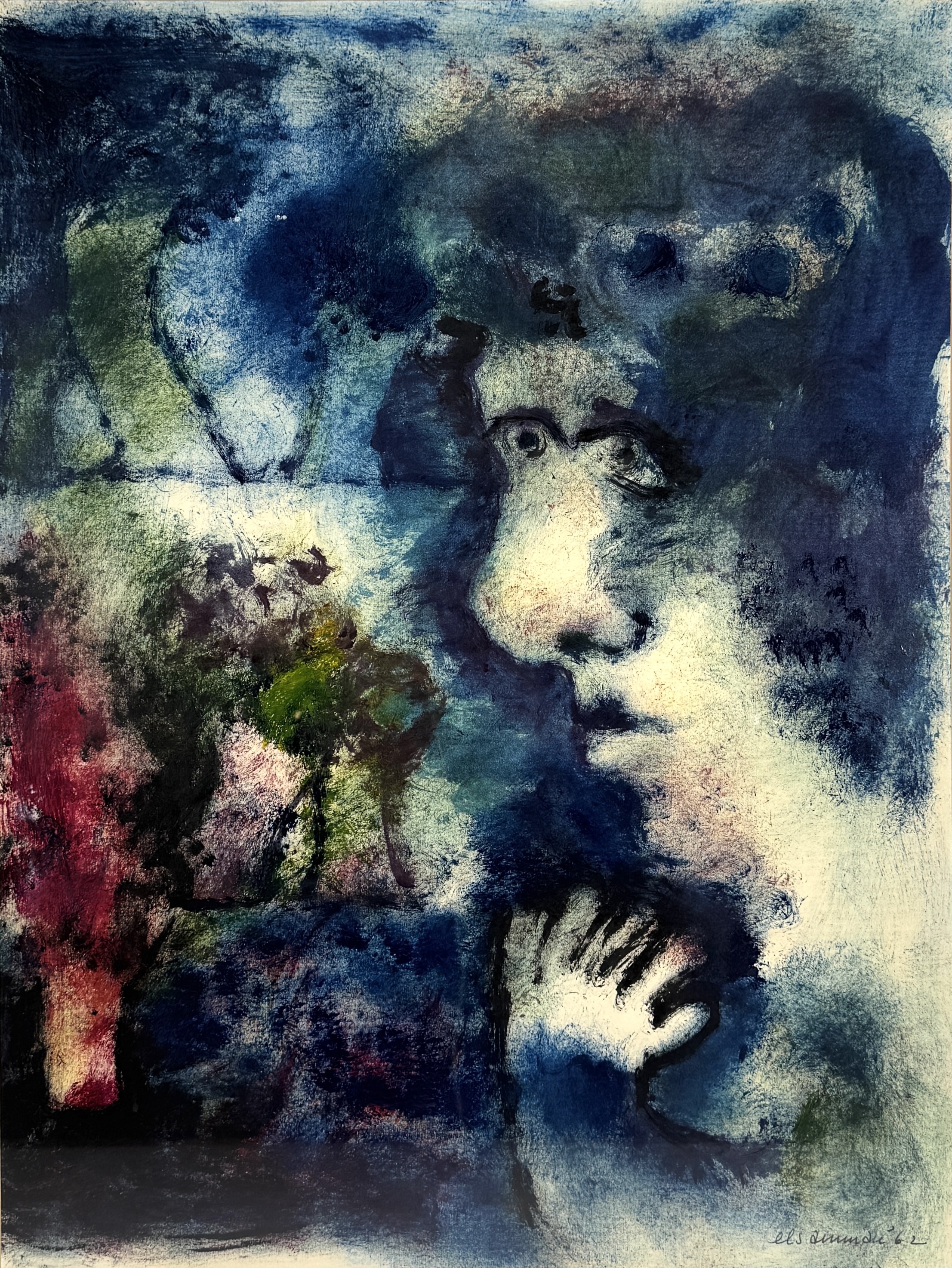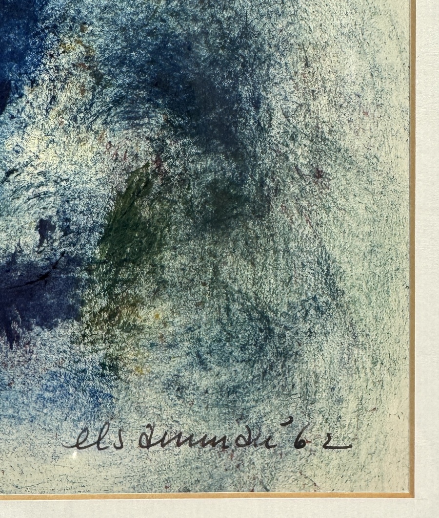 Werk op paper uit 1962 door Els Amman (1931–1978). Uitgevoerd in acrylverf op papier in een expressieve lyrisch-abstracte stijl. Het toont een dromerig blauw portret gecombineerd met organische kleurrijke vormen en zachte overgangen. Gesigneerd en gedateerd rechtsonder. De compositie straalt een poëtische, verstilde sfeer uit. Wilt u meedoen? Registreer en bied live of online! |