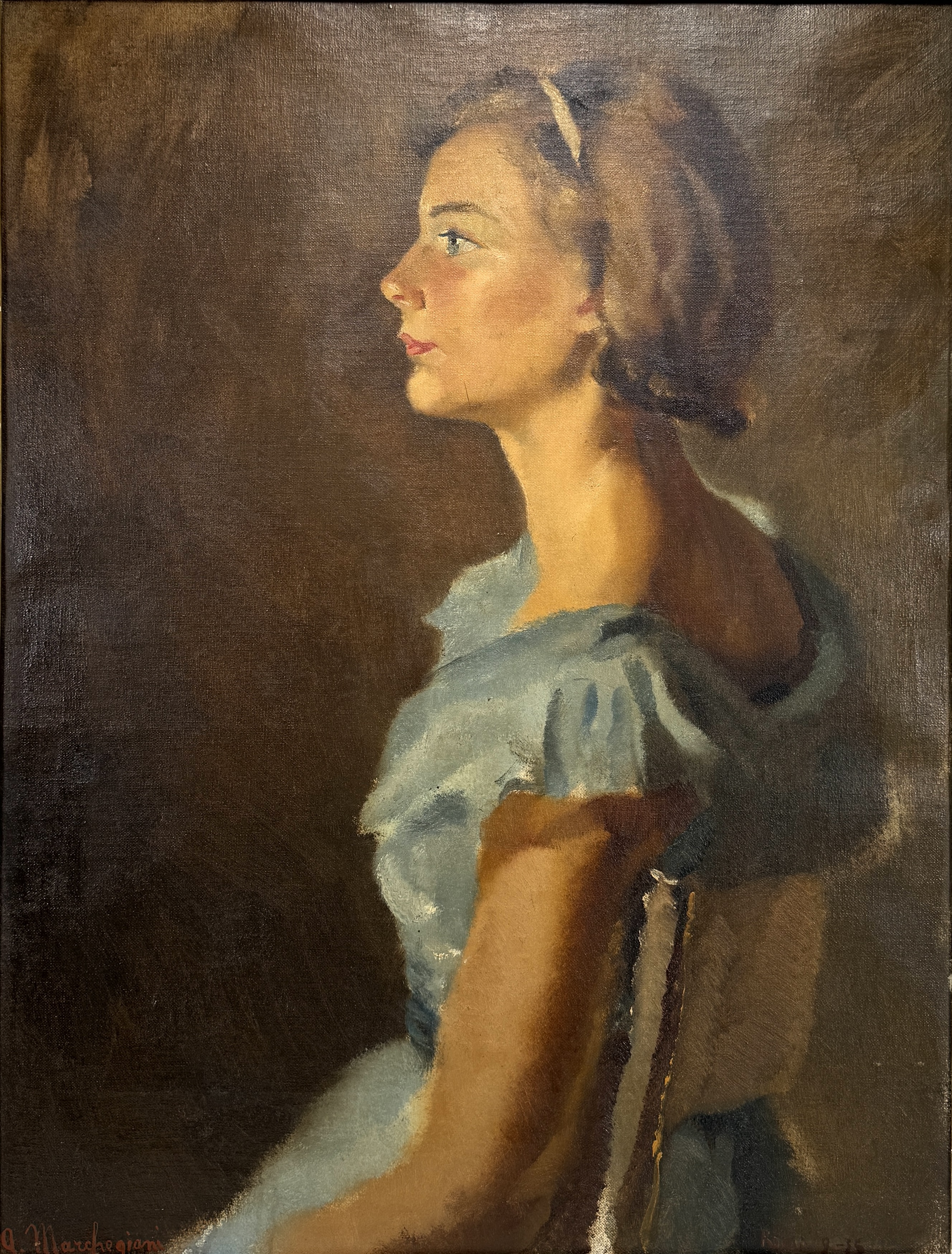 Olieverfschilderij A. Marchegiani, portret, 1956, Rome