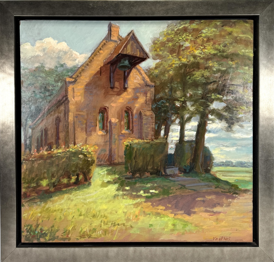 Schilderij Keimpe van der Kooi, kerkje van Janum, ca. eind 20e eeuw