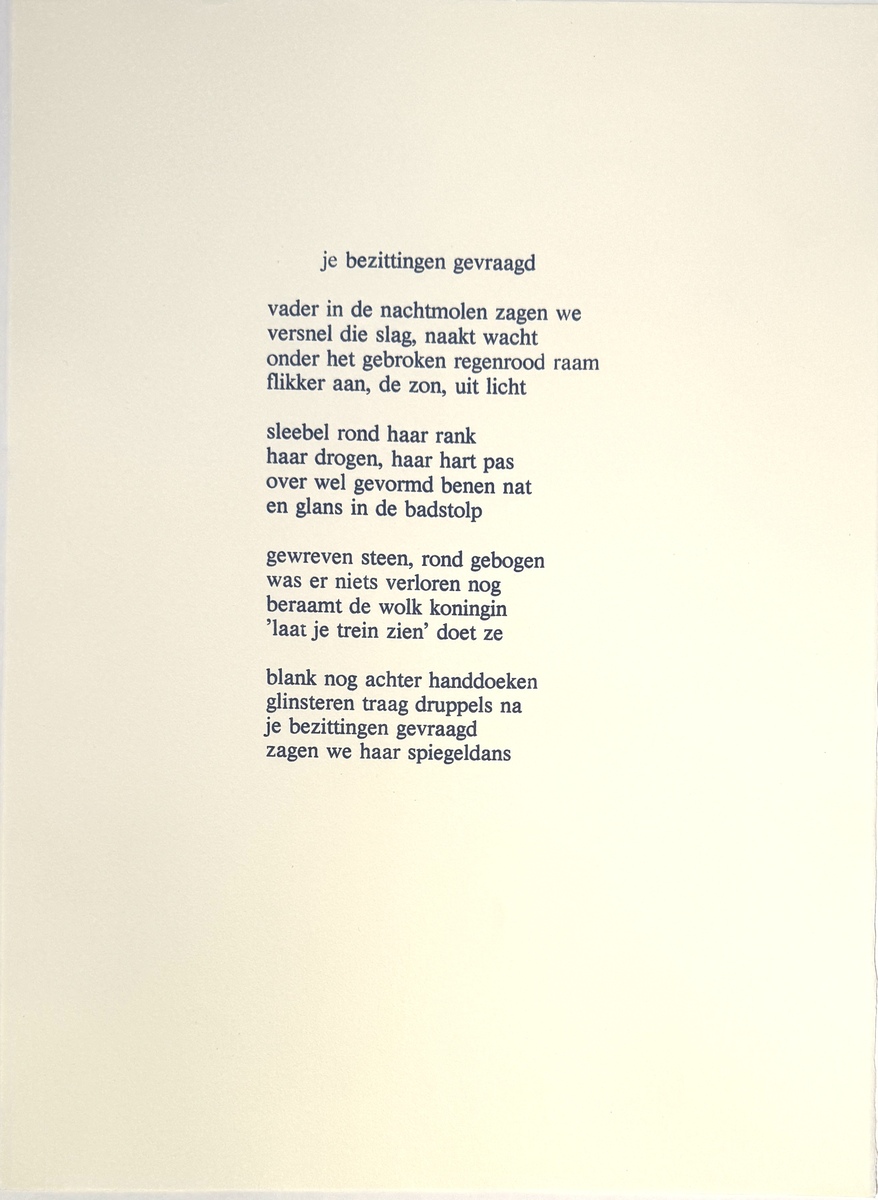 | Kavelnummer en naam | 252. Prenten en gedichten “Spiegeldans”, Wim Bors en Ferenc van Damme, 1985 | |