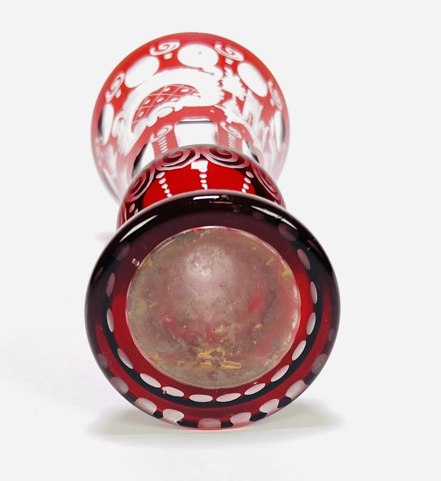 Glazen vaas in rood overlay glas, Bohemen, ca. 1900