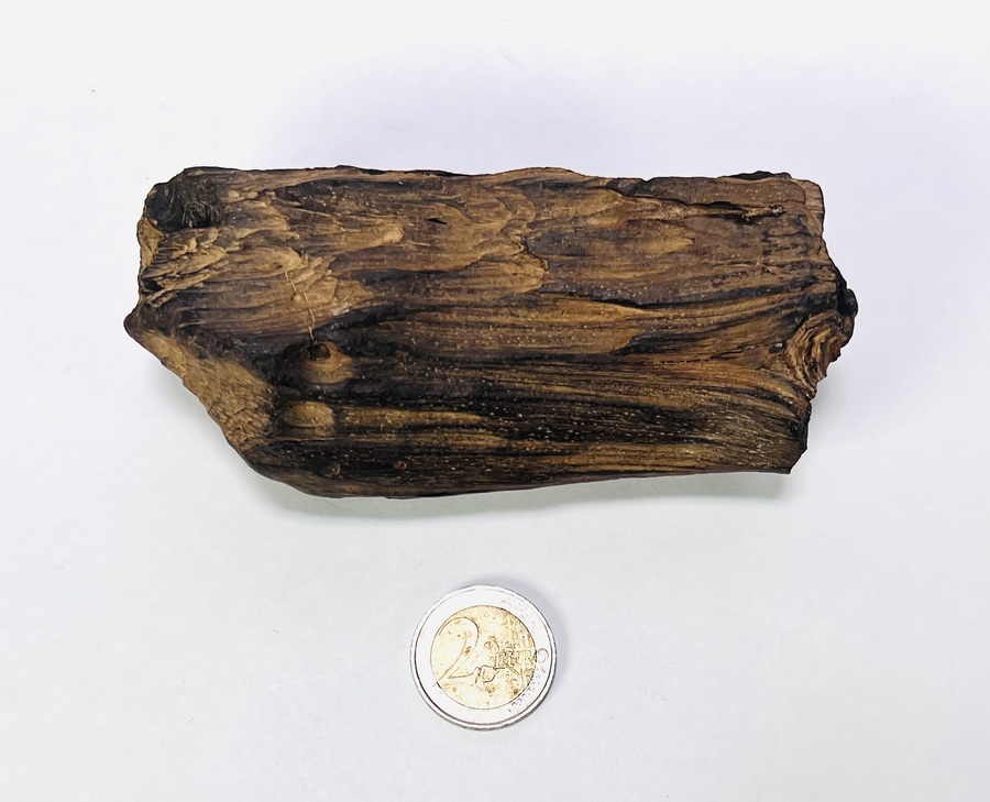 Versteend hout, gevonden in Markelo, ontstaan via natuurlijke fossilisatie waarbij hout over miljoenen jaren werd omgezet in siliciumdioxide. Onbewerkte vorm met zichtbare jaarringen en vezelstructuur. Het oppervlak toont natuurlijke breuklijnen en verkleuringen van beige tot donkerbruin. Direct deelnemen? Plaats vanaf 22 augustus alvast een schriftelijk bod via onze website! |