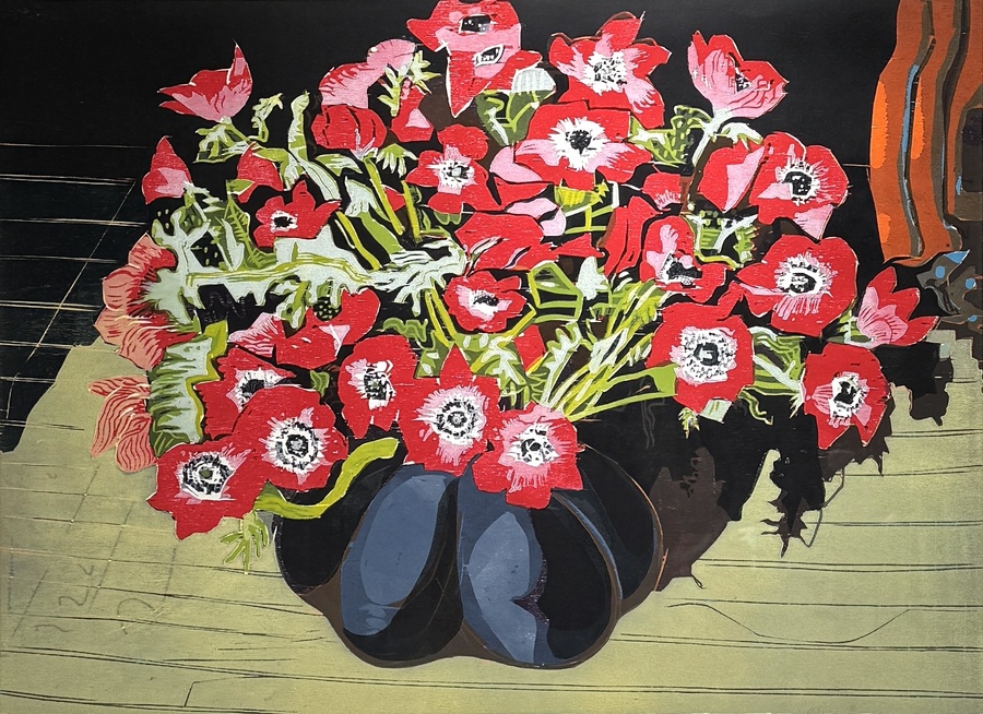 278. Houtsnede Vincent van Ojen, rode anemonen, 2007