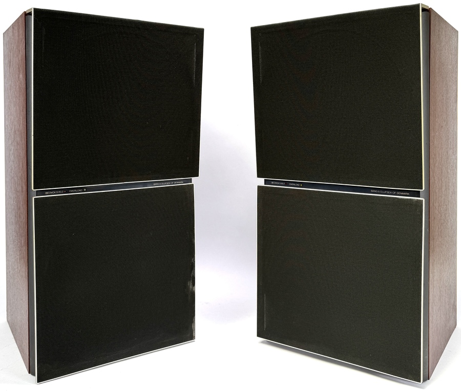 Set luidsprekers van Bang & Olufsen (opgericht 1925), type Beovox S 45-2, uitgevoerd in houtfineer met zwarte speakerdoek en aluminium lijsten. Industriële fabricage, ontworpen in de traditie van functioneel Deens modernisme. De speakers zijn uitgevoerd met passieve filtering en banaansteker-aansluitingen. Datering omstreeks 1980, inclusief metalen standaards.