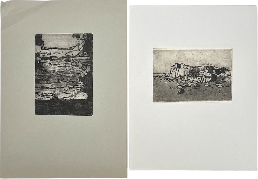 381. Etsen/nieuwjaarskaarten Thijs Buit, rotsformaties, jaren '60