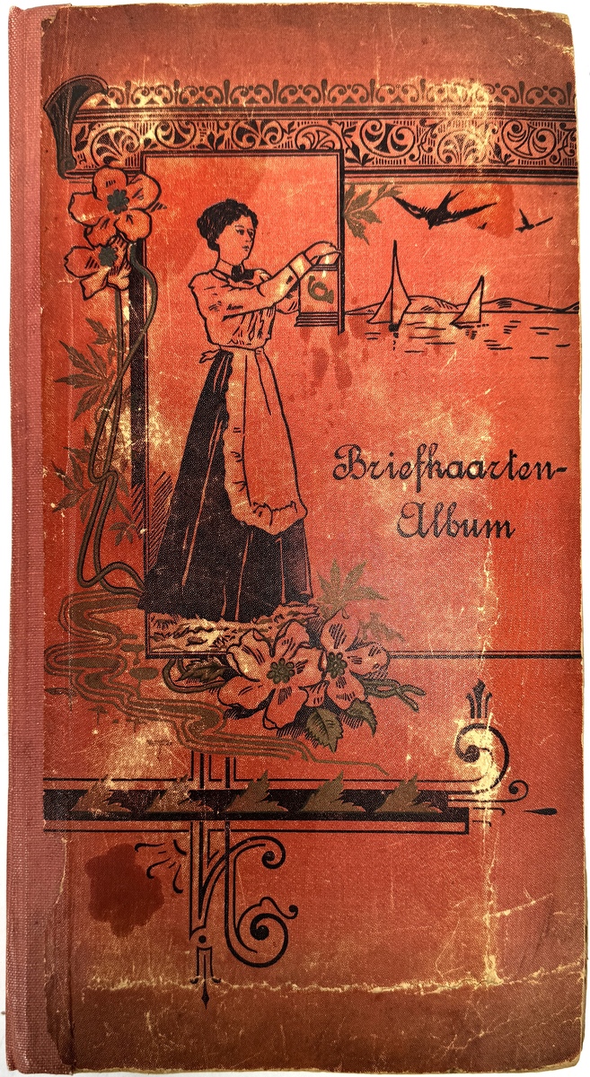 Een album met een zeer ruime collectie historische ansichtkaarten van Groningen, eind 19e - begin 20e eeuw. Het album heeft een rode kaft met een Art Nouveau motief. De kaarten tonen diverse stadsgezichten, waaronder de Grote Markt en het Hoofdstation. Sommige kaarten zijn ingekleurd en er zijn zowel gelopen als ongelopen exemplaren.