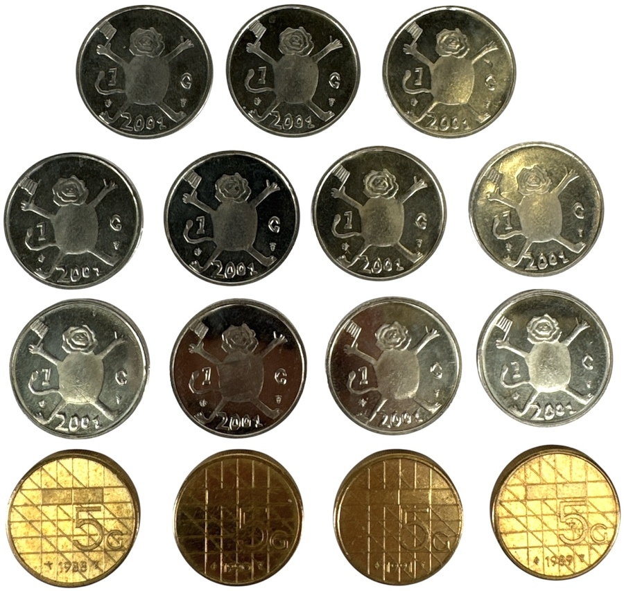 438. Munten Loekie 1 gulden & 5 gulden, ca. 1988–2001, Nederland