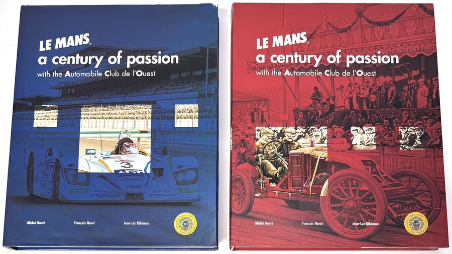 Twee hardcover boeken (gekartonneerd) met stofomslag in een cassette. Le mans, a century of passion with the Automobile Club de l’Ouest bestrijkt de periode 1906-2006. Oplage: 2500.