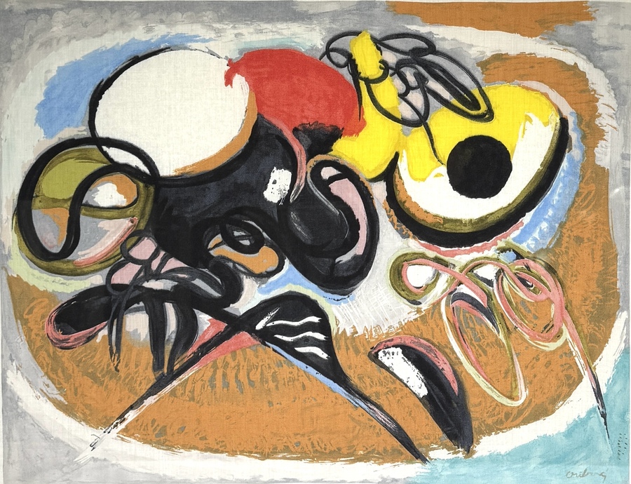 118. Zijde afdruk Piet Ouborg, abstracte compositie, 1992