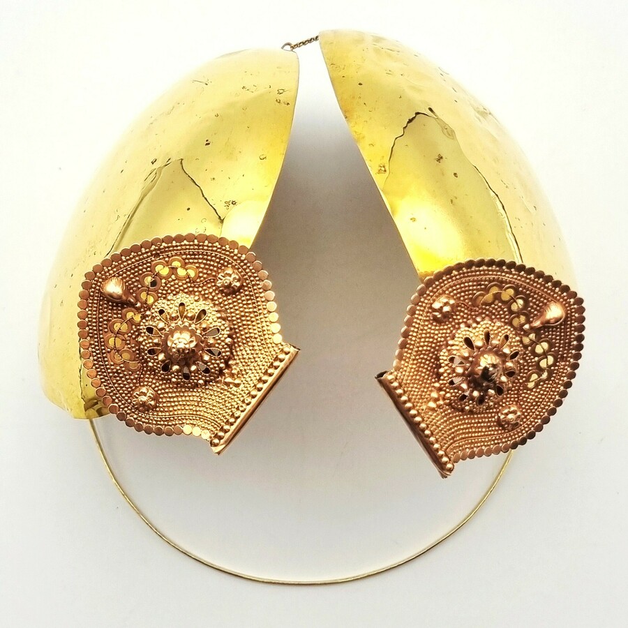 501. Gouden oorijzer met filigrain broches op de kappen, 1870, Friesland
