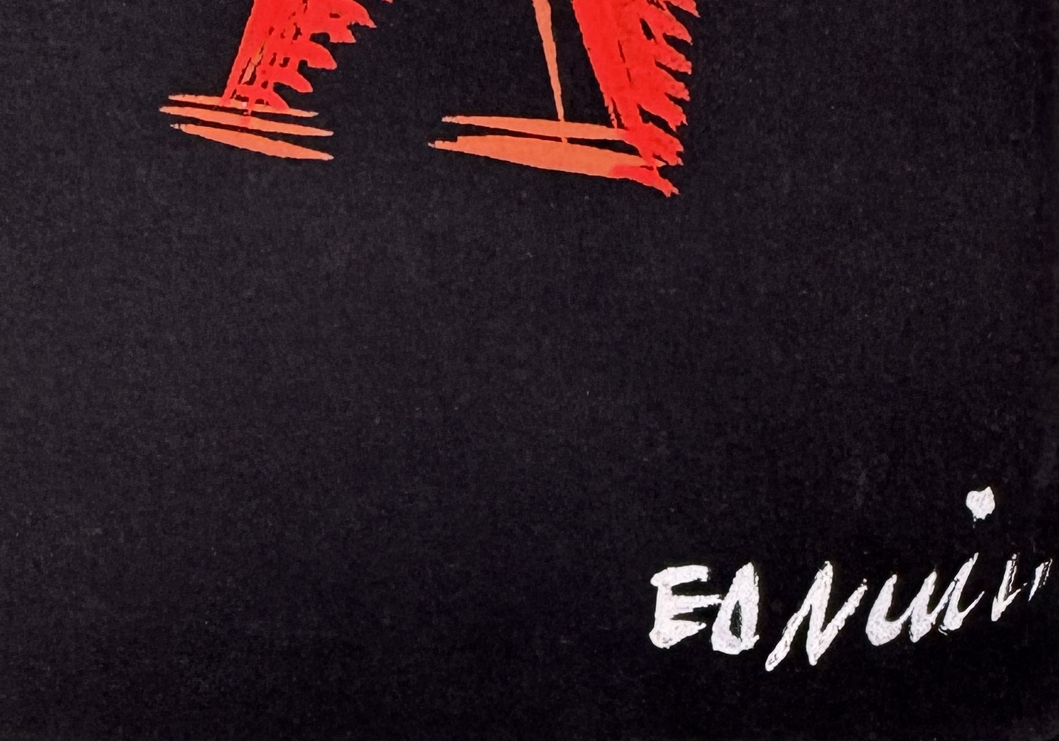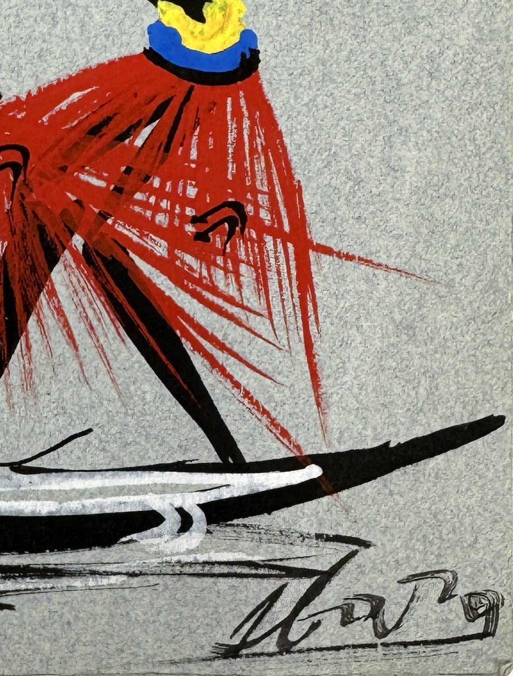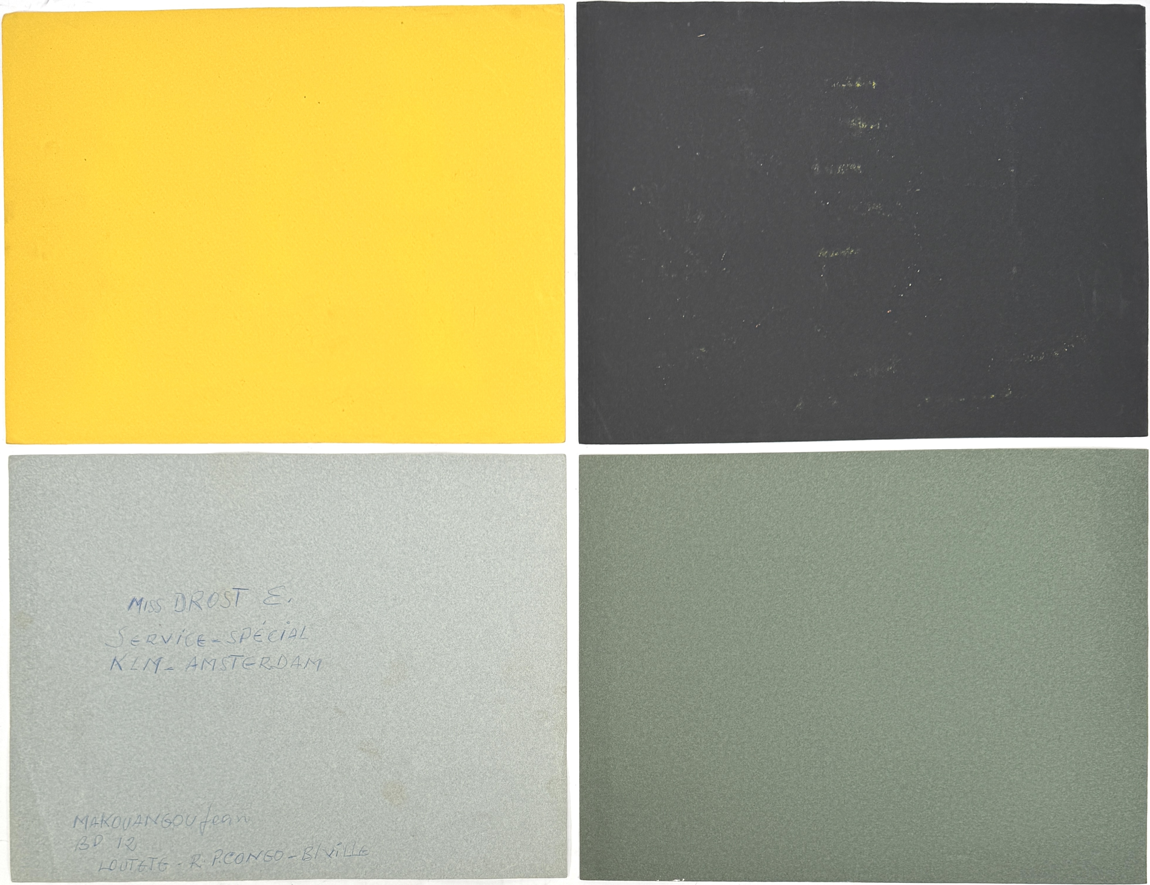 Vier modernistische tekeningen, gesigneerd door Ed Nui, Koumon en een derde maker, uitgevoerd op getint karton. Voorstellingen van dansende en jagende figuren. Visuele kenmerken zijn onder meer de vlakverdeling in primaire kleuren, gestileerde menselijke vormen en Afrikaans thematisch motief. Oorsprong: Ivoorkust of Congo-Brazzaville, circa jaren 1950–1960. Rechtsonder gesigneerd. Zelf beoordelen? Je bent welkom op onze kijkdagen op 29, 30 en 31 augustus! |