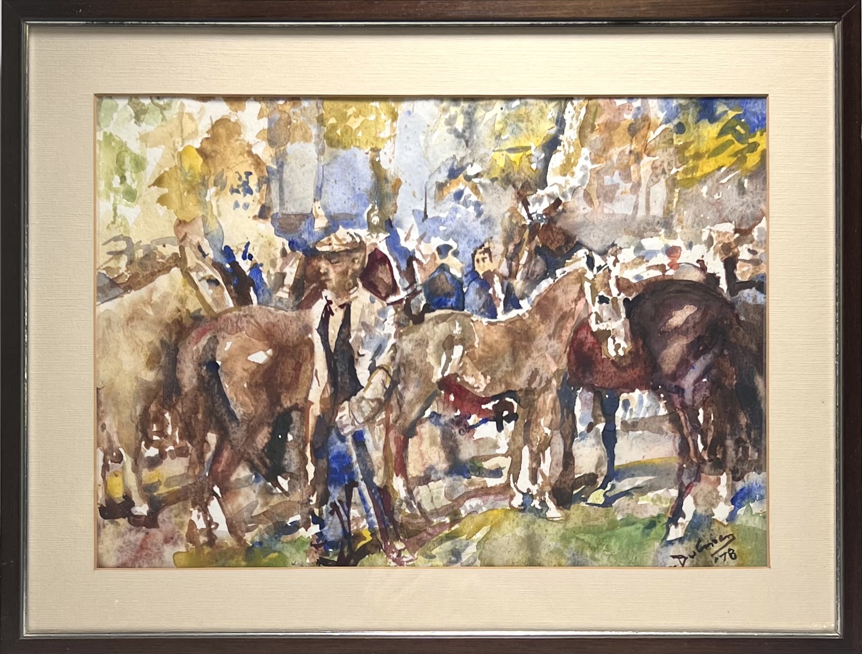 Aquarel Erasmus Bernhard van Dulmen Krumpelman, paardenmarkt, 1978