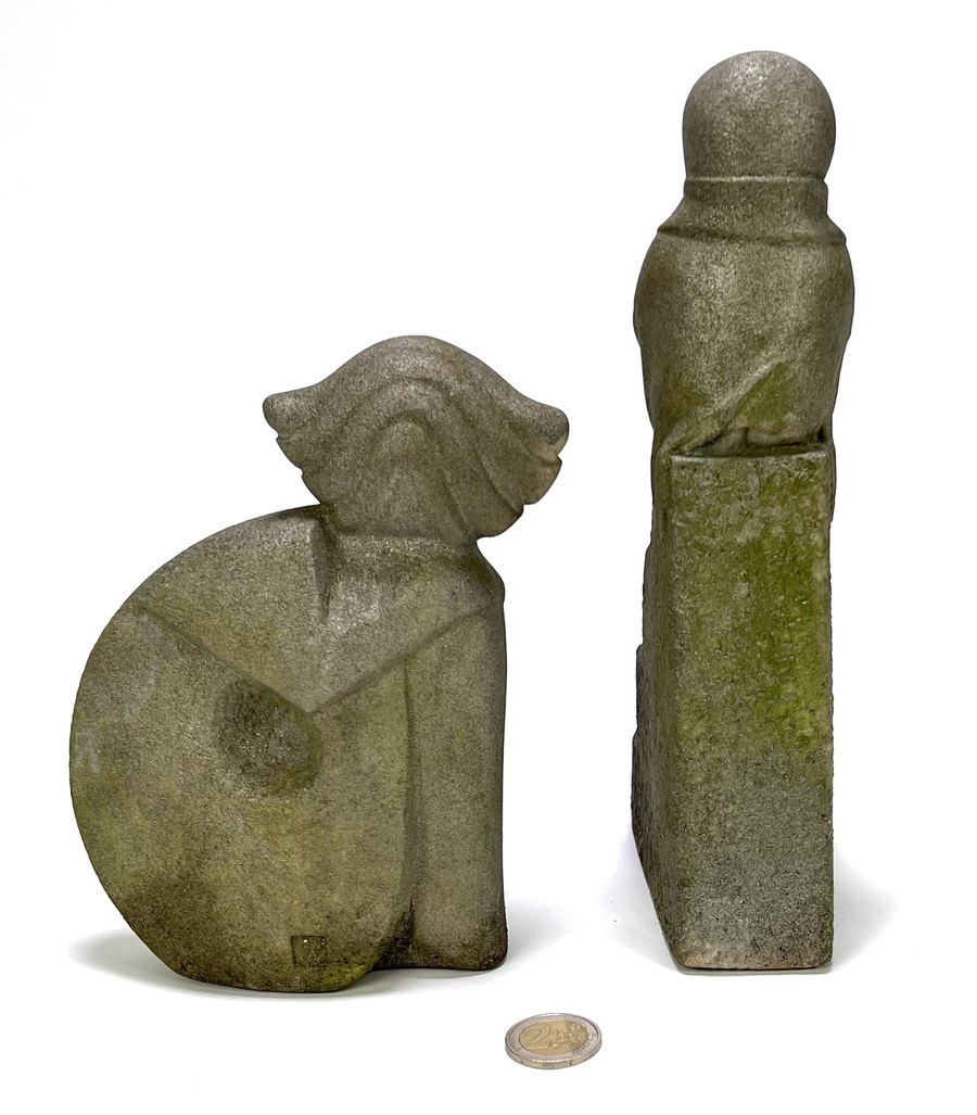 Stenen beelden, gestileerde figuren, midden 20e eeuw
